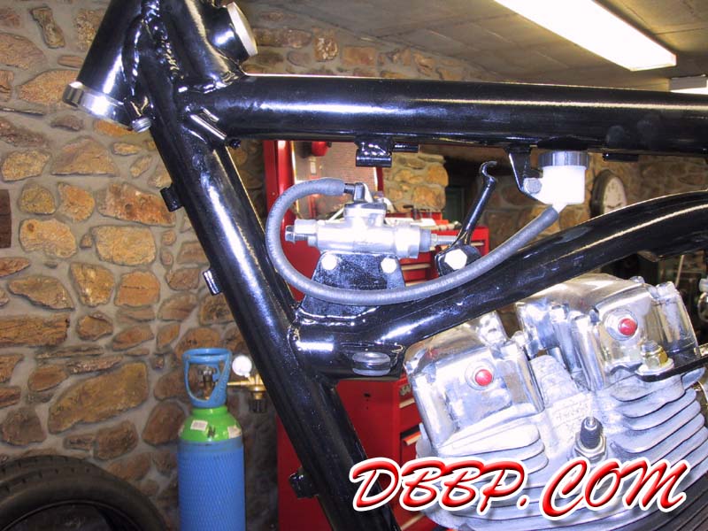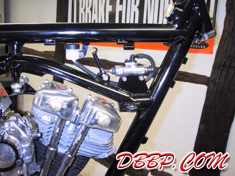 Hey, der Krugger hat das schon mal gemacht. Auch Thunderbike hat es bei der Spetaular und OpenMind gemacht. Aber da waren es Drehgriffe anstatt eines Bremshebels und Kupplungshebels. Wie Rainer es schon beschrieben hat, unterm Tank einen kleinen Heckbremszylinder angesteuert. Bilder hab ich leider k...
