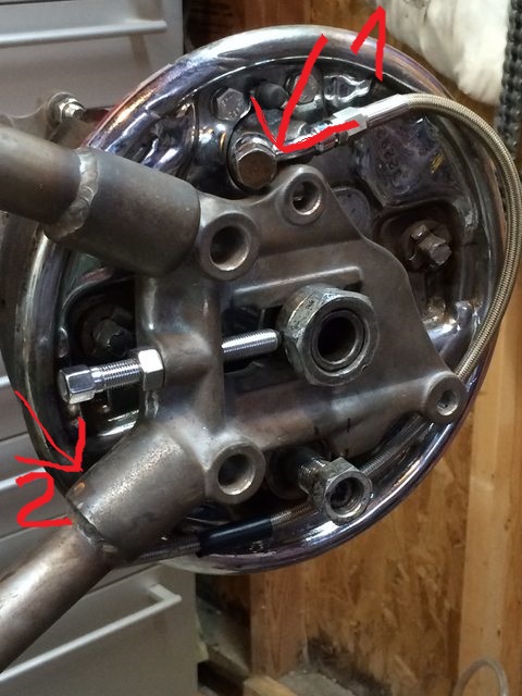 das Foto ist nur ein Beispielfoto zwecks der engen Position der Banjoverschraubung und des geringen Abstandes Bremsplatte-Rahmen. Sein Rahmen ist ein nachgebauter und die gabs auch mit diesem angegossenen Auge für die hydraulische Trommelbremse.