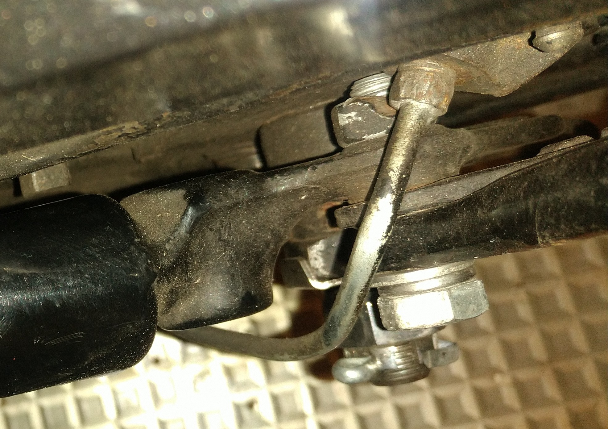 Allerdings hat die linke Achsaufnahme unterhalb des Fensters für die Achse noch ein zusätzliches Auge, das die Verwendung einer hydraulischen Trommelbremse ermöglicht, so dass der Bremskolben über der Achse sitzt.
