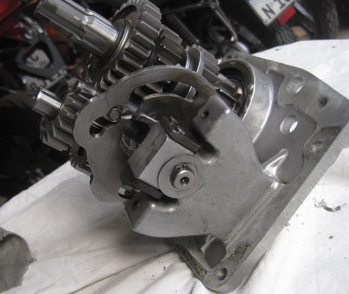 der ironhead habe ich dieser tage das getriebe entrissen, um dem bei warmem öl rausspringenden 1. gang auf den grund zu gehen.