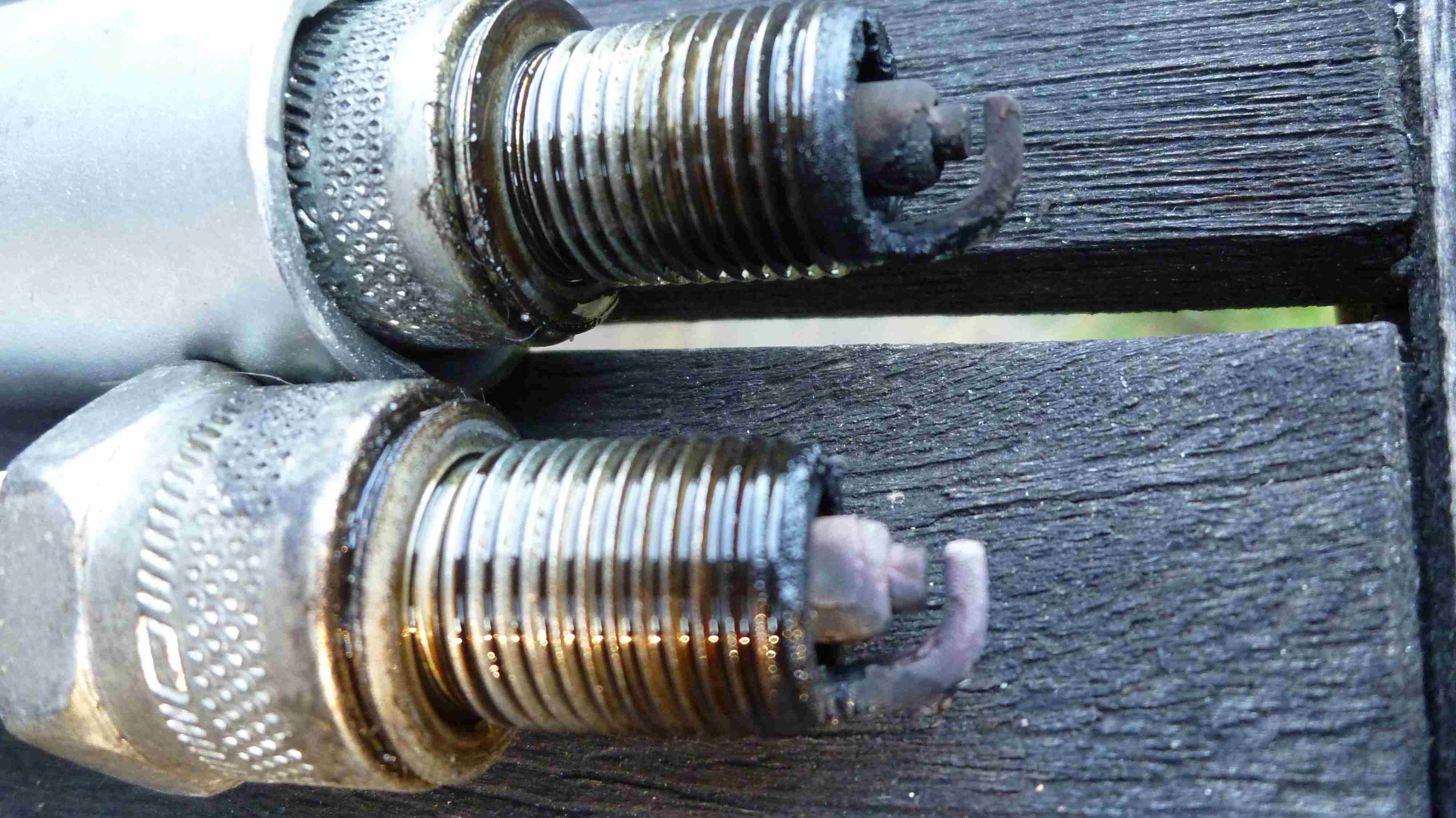 Jetzt habe ich nach den ersten 100 km mal die Kerzen gecheckt und die sehen nicht ganz so dolle aus!