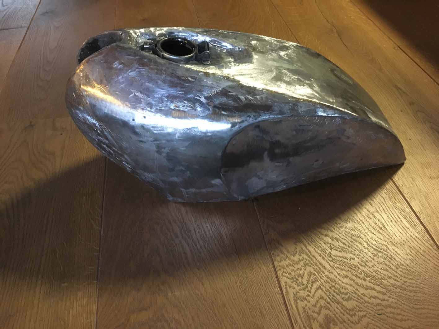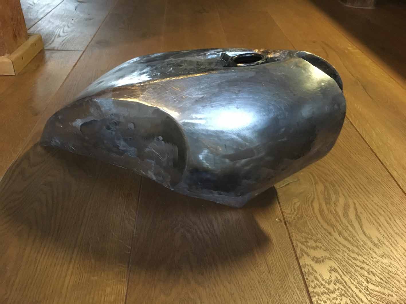 Glückwunsch zum erfolgreichen Tankbau, schaut gut aus, auch wenn er noch reichlich Zinn und / oder Spachtel vorm Lackieren braucht, oder willst du ihn so lassen?