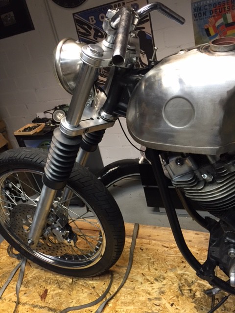 So, der Bock ist soweit fertig. Ich hatte mich dann ja noch für eine Sportster Gabelbrücke entschieden und bin mir nicht ganz sicher wegen dem Lenkkopflager einstellen. Bei der alten Gabelbrücke war zum einstellen keine Zahnmutter unter der oberen Brücke. Das Spiel war mittels der Zentralmutter am Gabeljoch eingestellt. So habe ich es jetzt auch mit der Sportstergabel gemacht. Ist das nun so richtig, oder muss unter der oberen Brücke doch die sonst übliche Zahnmutter zum einstellen?