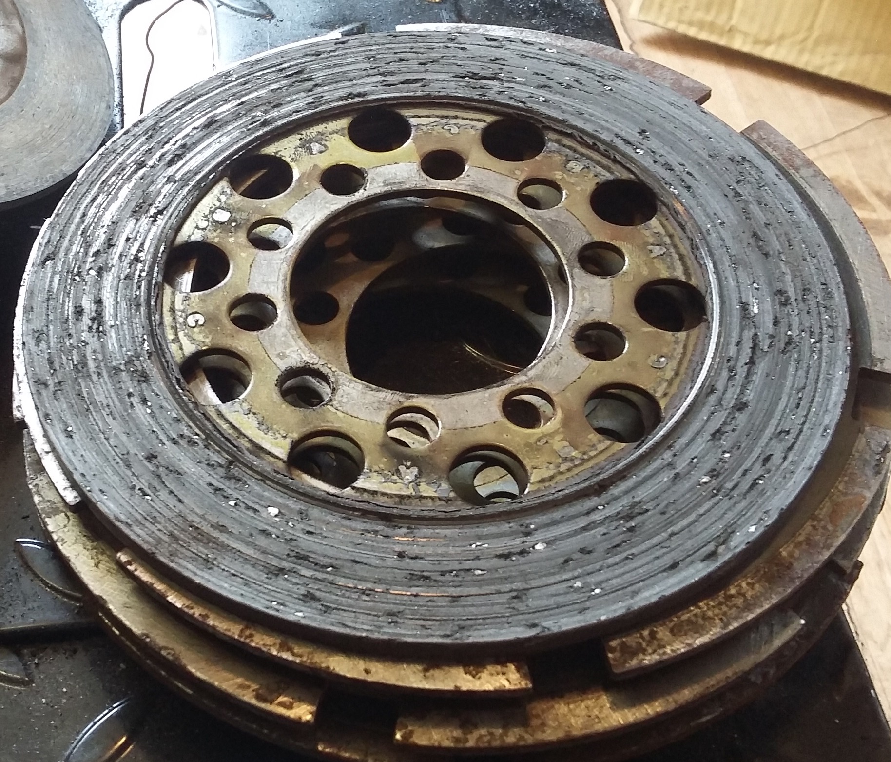 Dann evtl. Korb abdrehen oder die gröbsten Riefen glätten, neuen Belag und fertig. Die OEM Kupplung verträgt doch einiges...