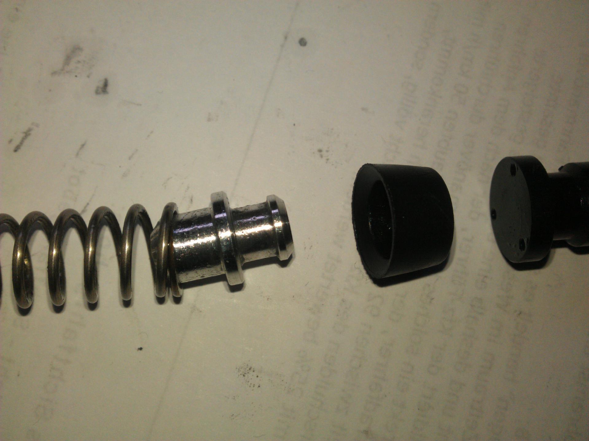 So kanns nicht gehen, denn dann sitzt die Manschette vor dem Leitungsanschluss und die Feder drückt die schön dicht so das keine Bremsflüssigkeit rauskann in die Leitung.