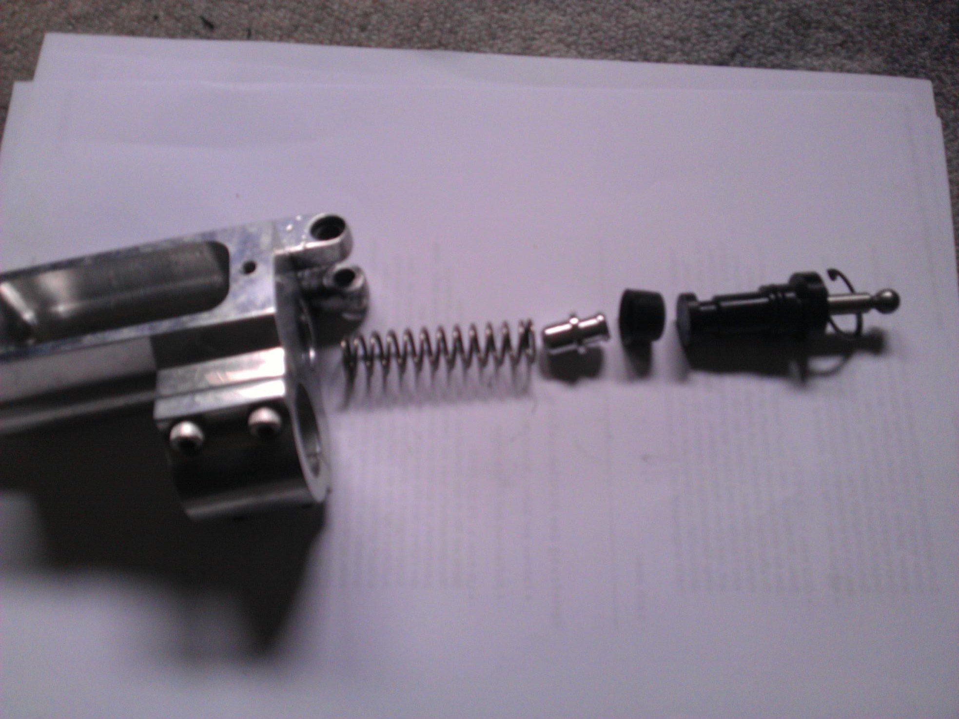 das sind die Teile aus dem Bremszylinder ,Reihenfolge ist ok .Manschette und Aluteil sind die richtig gedreht?Aluteil passt egal wie immer in die Feder .