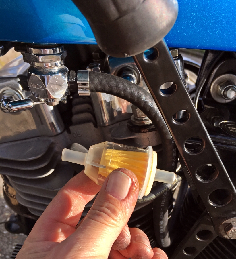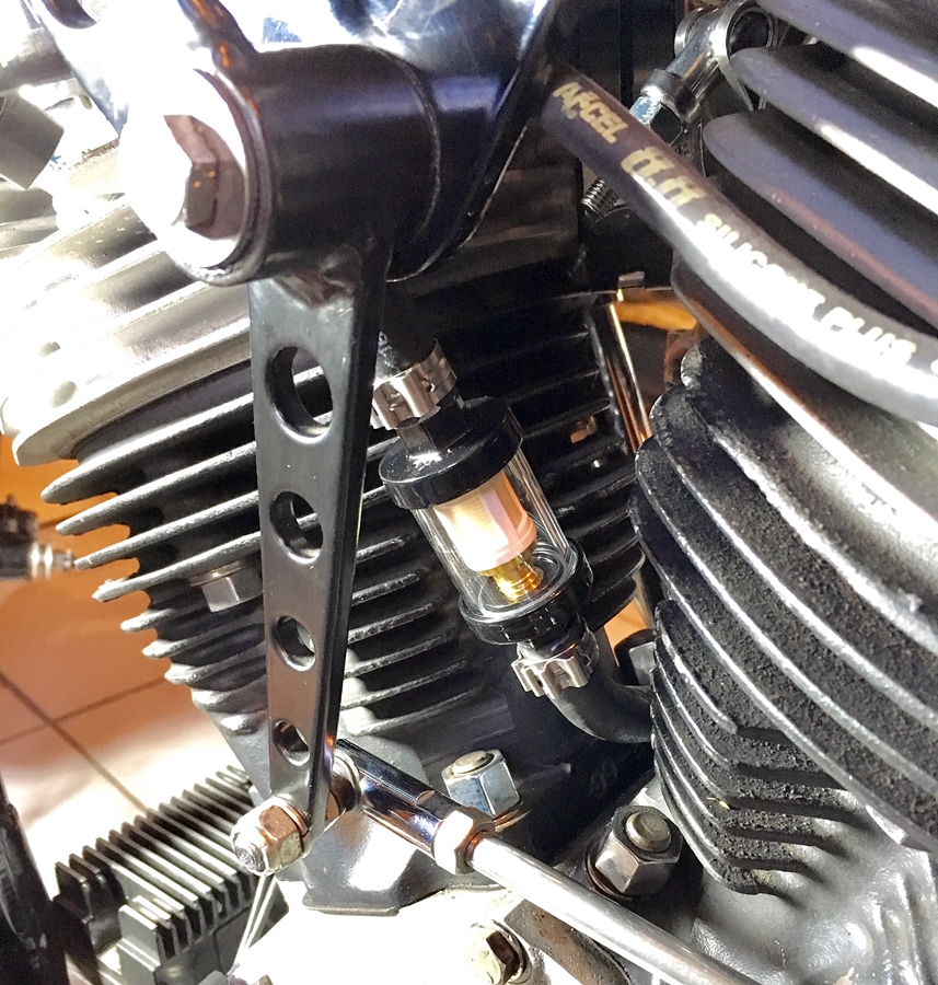 Heute während der Fahrt ist die Shovel ausgegangen. Kurz geglotzt, mmhhh, kein Benzin im Plastikfilter zu sehen.