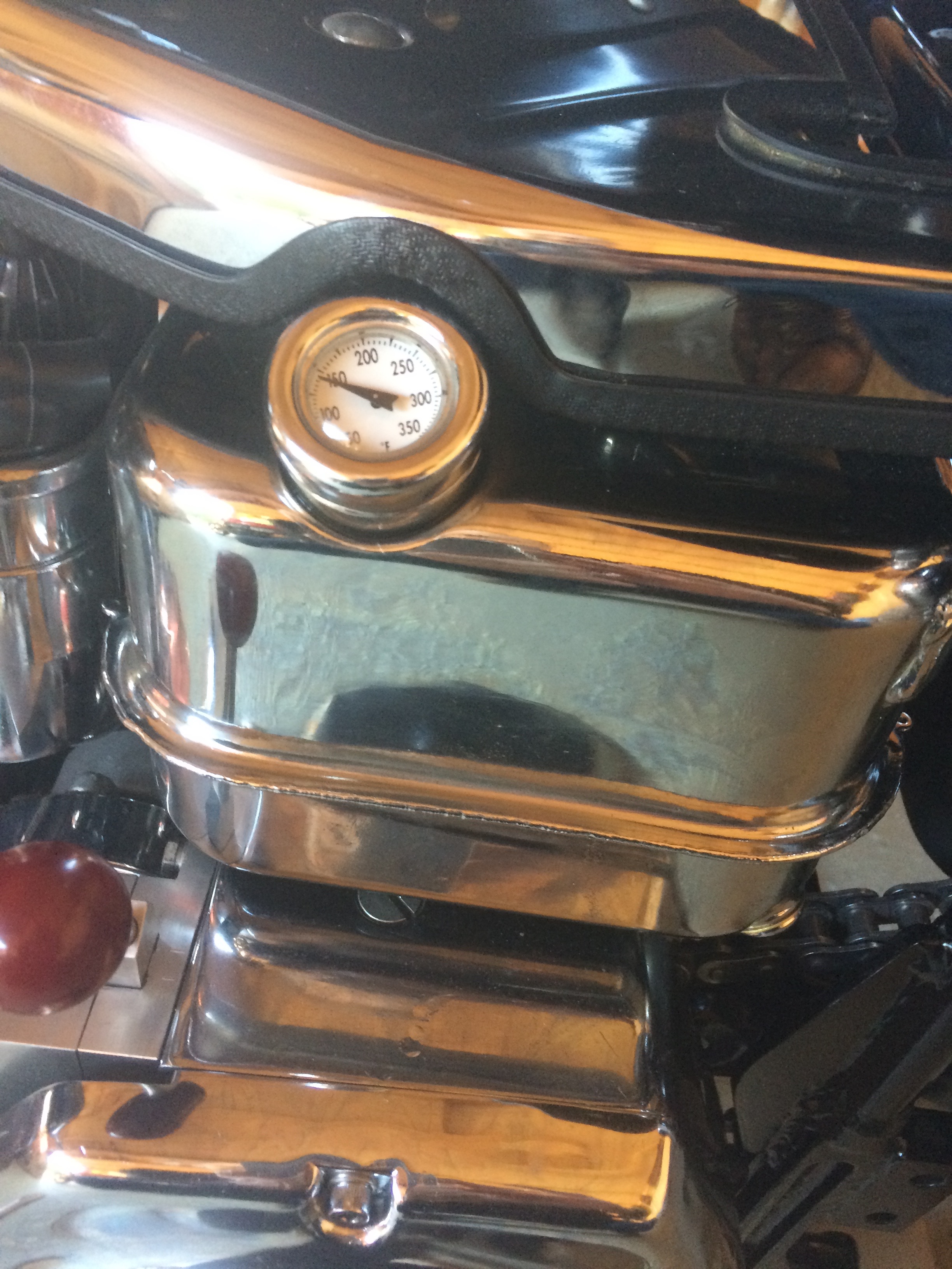Ich habe den "Classic-Öltank verchromt, FX / FL 65- früh 82" (siehe Foto), dazu den Ölmess-Stab mit Temperaturanzeiger (siehe Foto). Nach allgemeiner Meinung und gemäss der Beschreibung im Manual ist die Motoröl-Füllmenge 3,78 Liter = 4 quarts.