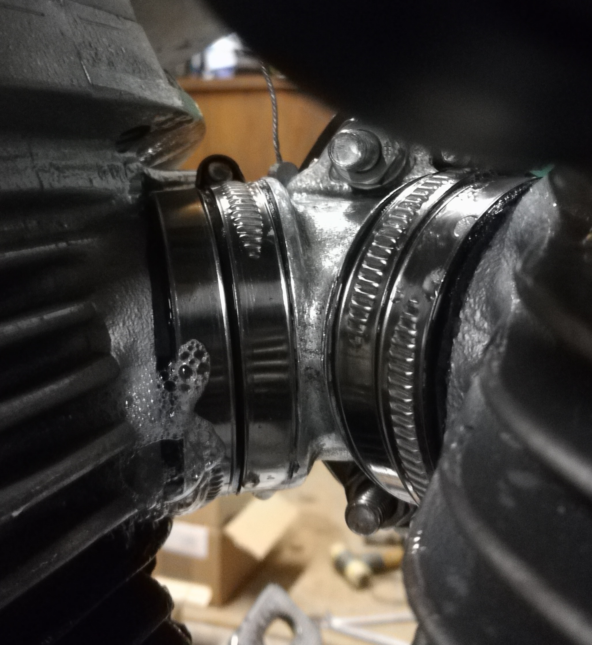 Das ist so nervend der ganze Mist, jetzt hab ich wieder die O-Ringe und die zweiteiligen Messingschellen drin, stabil ist das ja, aber das Patschen ist immer noch ab und an da.