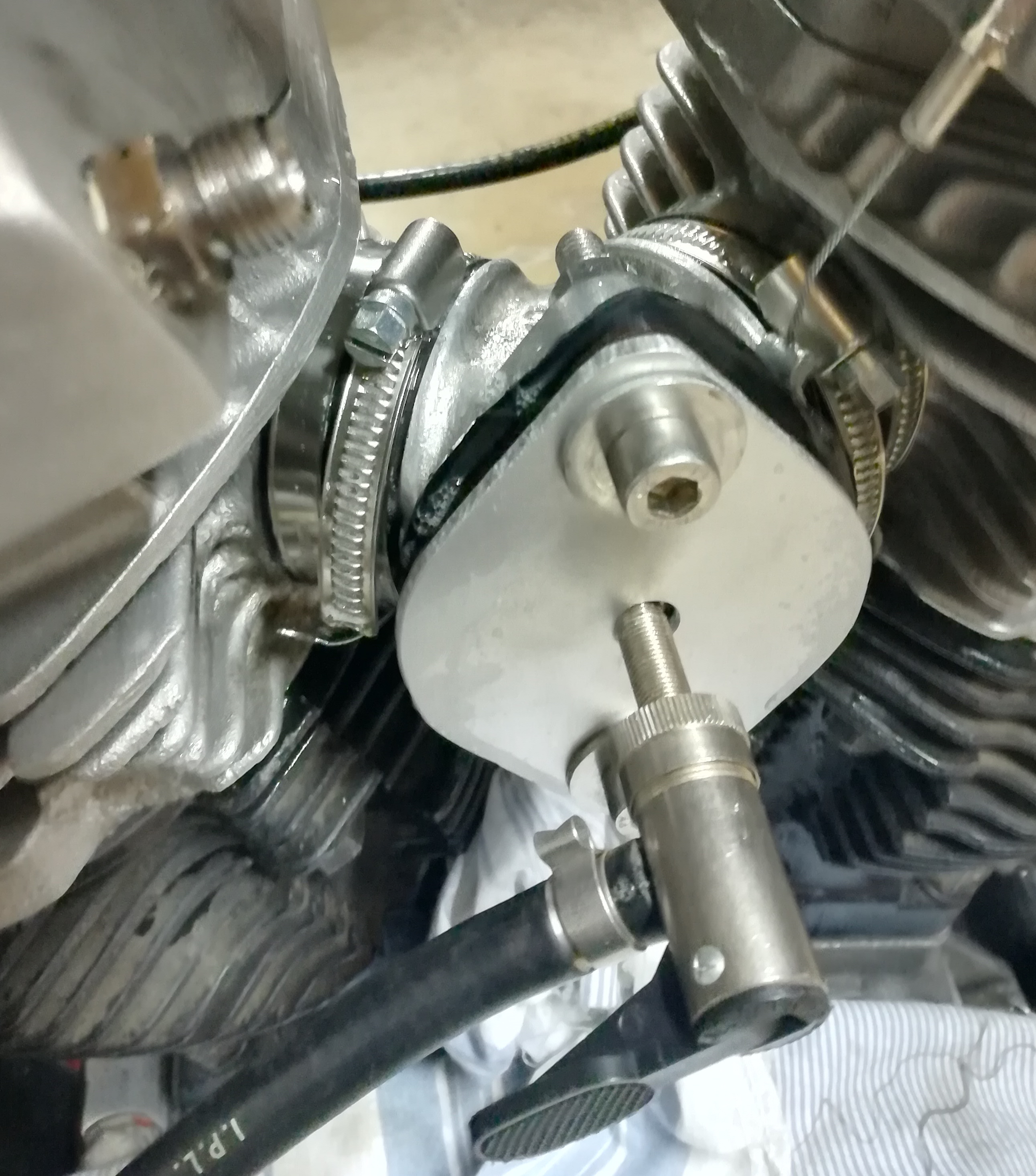 Und auch ganz wichtig, die Abstützung. Wer ohne fährt hat eh verloren. Da Du ja auch einen CV fährst, musst Du Deine selbst hergestellt haben. Meine Erfahrung hat gezeigt, dass es sinnvoll ist, den Vergaser erst anzubauen und dann die Abstützung spannungsfrei entsprechend herzustellen, soll bedeuten, ich "punkte" den Halter am Moped an und verschweiße ihn danach. Dadurch vermeide ich, dass sich beim Festziehen der Abstützung der Vergaser verdreht und sich dieses auf die Gummis auswirkt.