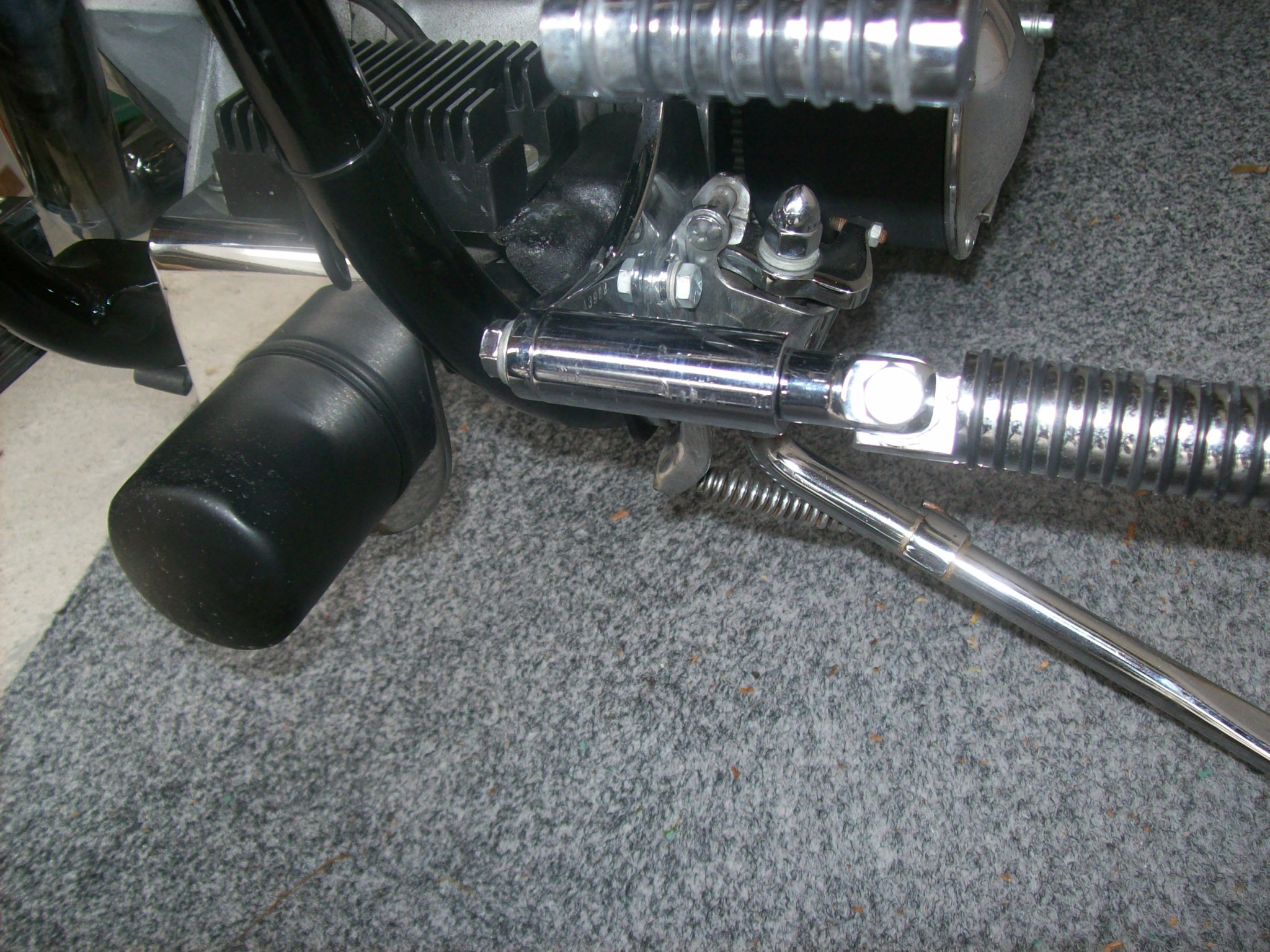 ich hab ihn an die Getriebeplatte - also hinter das Getriebe, unter die Schwingenaufnahme - montiert.