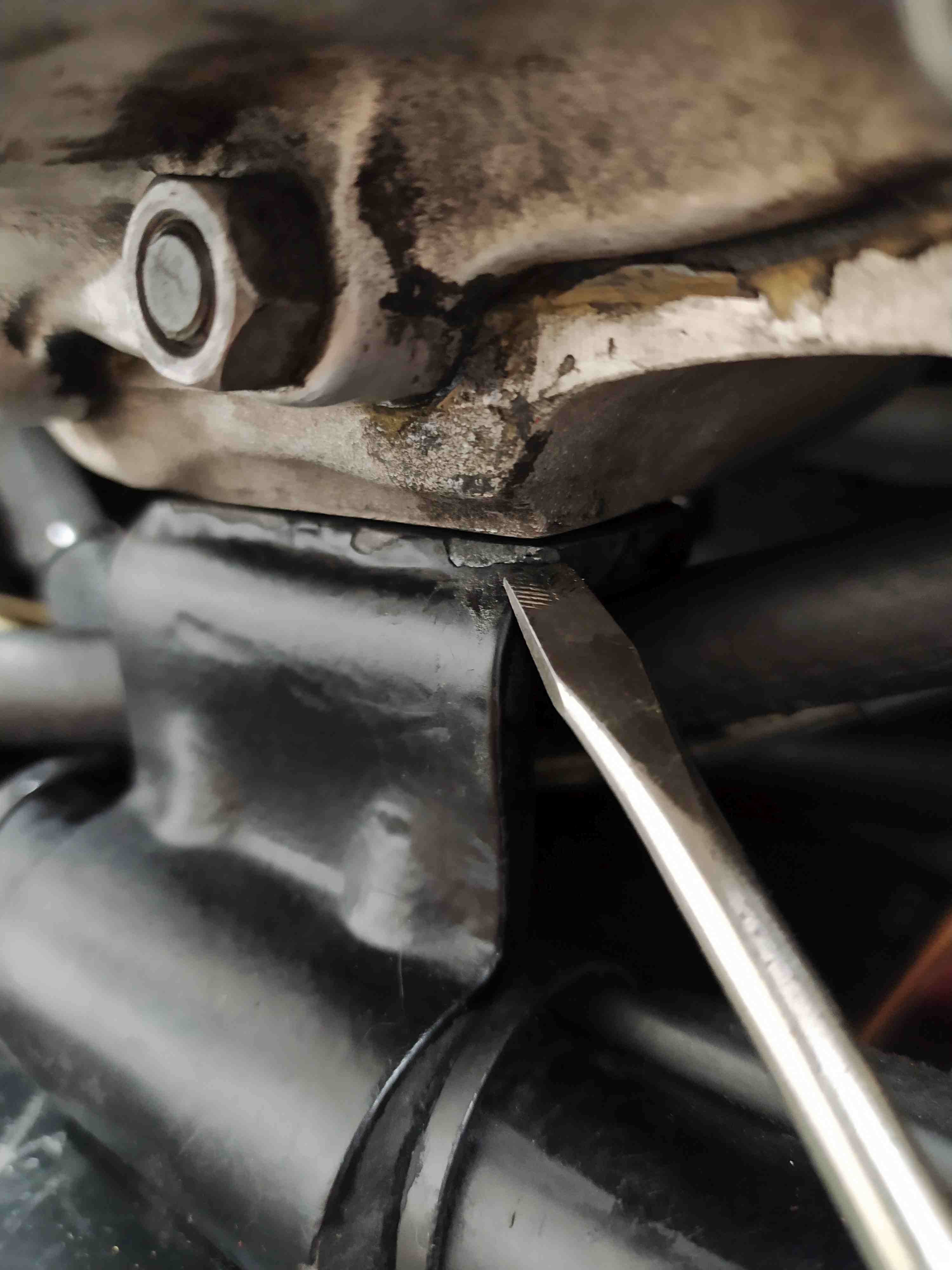 Original war in einer Shovel die von Norbert beschriebene Platte(Blech+Buchsen) verbaut.