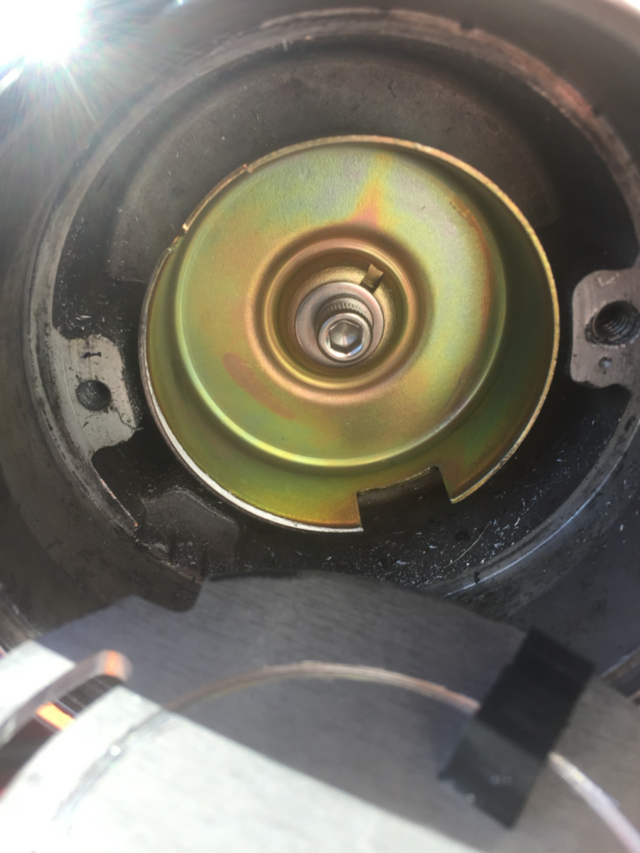 Wenn ich ihn anschrauben will sieht man das er schief auf der Welle sitzt da eine Seite vom Rotor höher hinausragt.