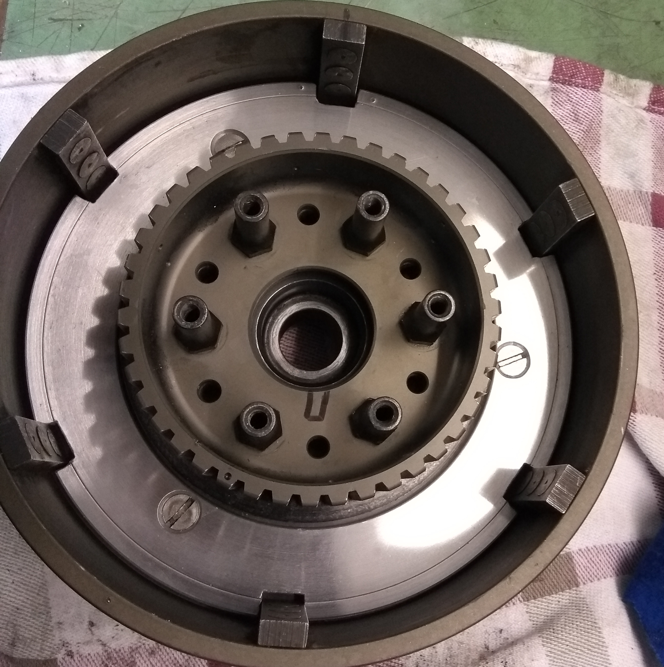 In den Kupplungskorb kommt dann ne dicke Platte in der Form einer OEM Stahlscheibe, auf der dann der Barnett Reibbelag aufliegt.
