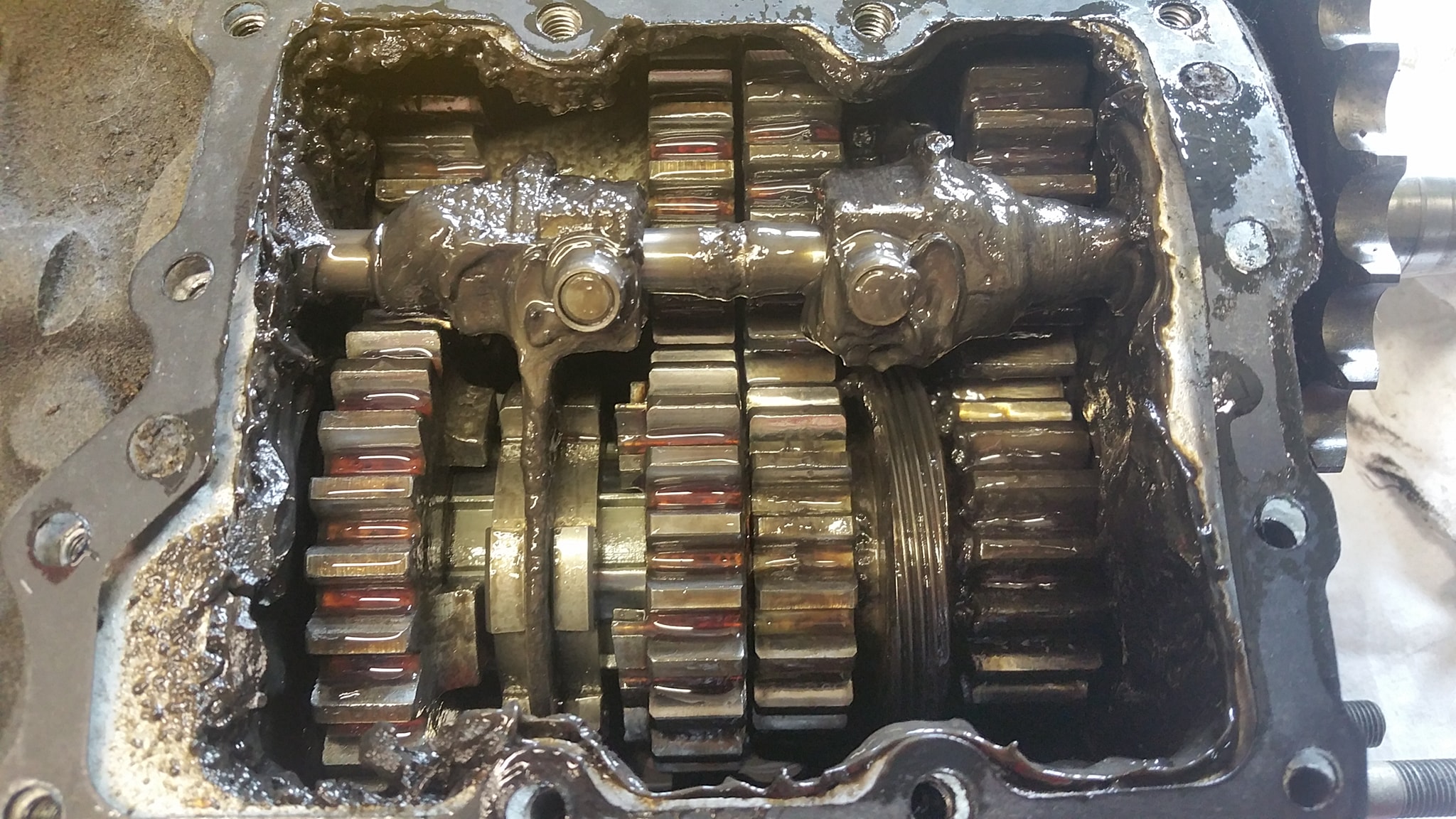 Nachstehend ein paar Bilder. Der Mist sitzt zäh in jeder Ritze. Buchsen und Wellen waren alle völlig platt weil's nicht da hinkommt wo es hin soll. Finger weg von dem Mist.