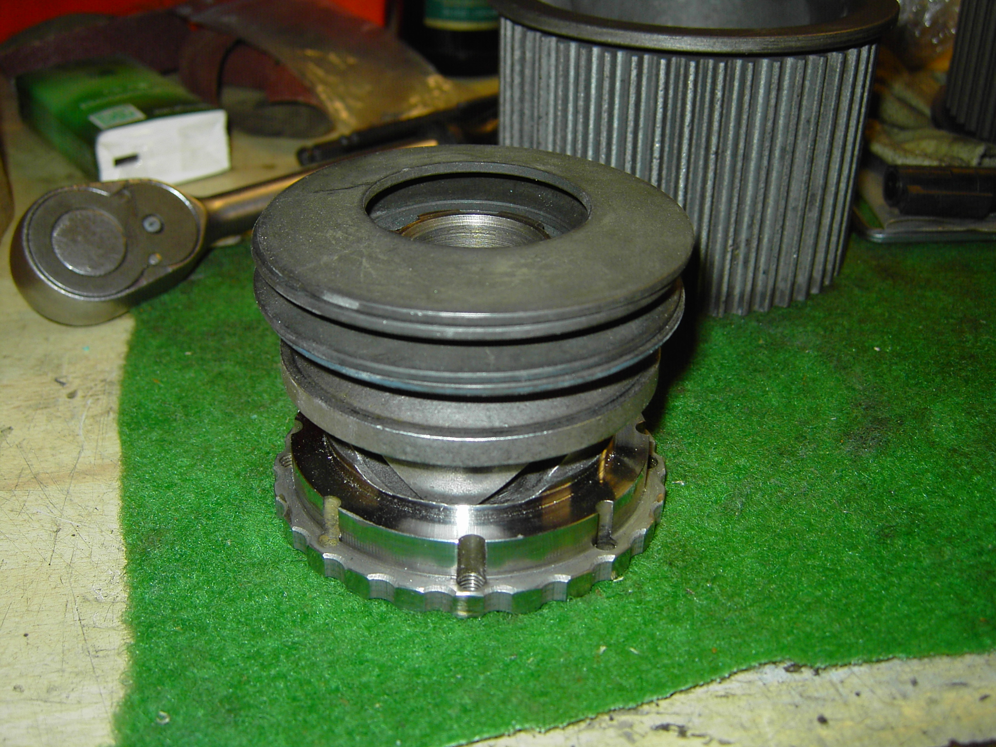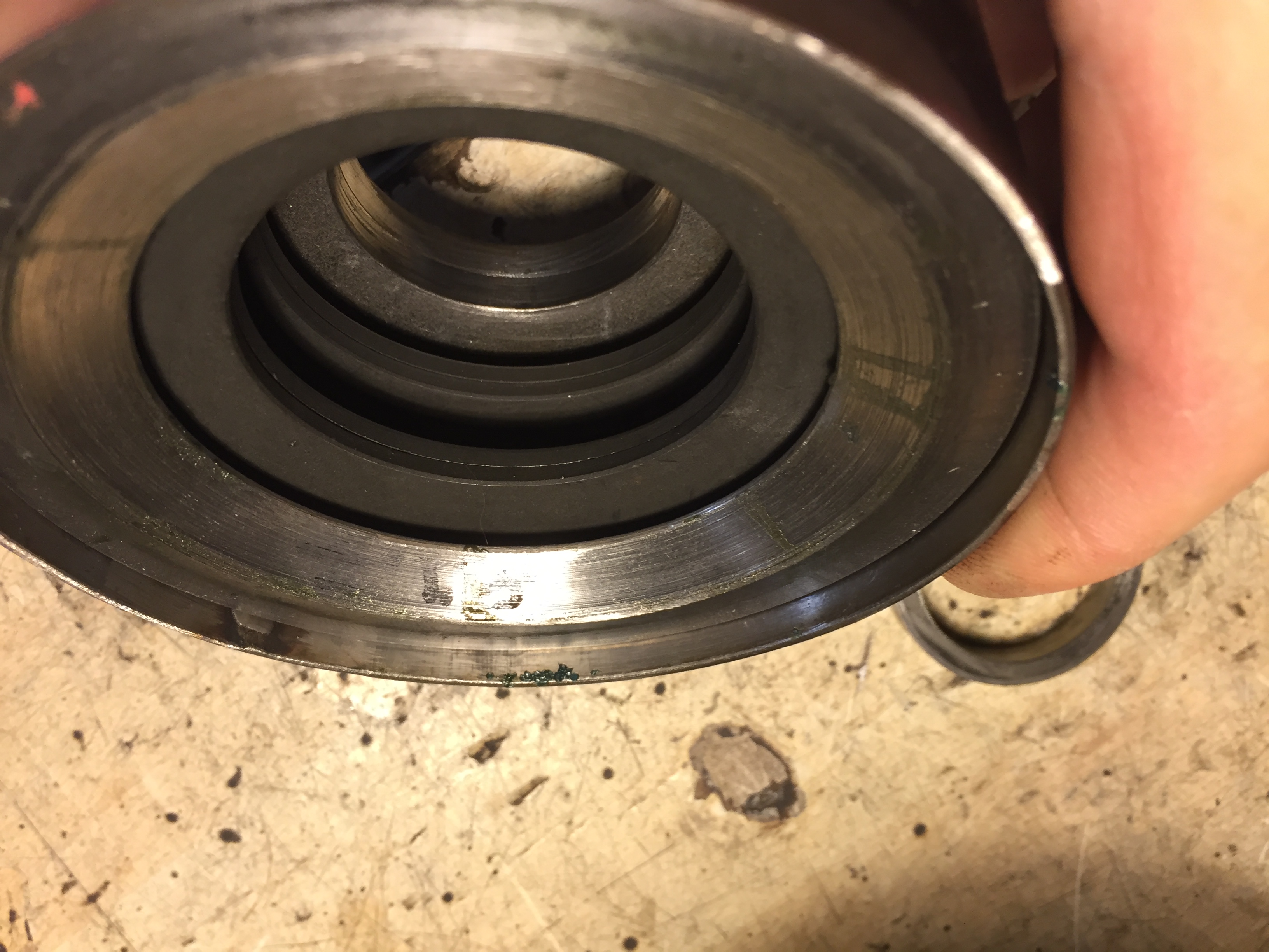 Aluring gedreht, verbohrt und verschraubt, unten drunter mit Dichtungsmaterial, Simmerring eingesetzt, spezielle Abschlußplatte gedreht und mit O-Ring eingesetzt. Keine Panik, der Simmerring macht nur die Nickbewegung der Nocken mit, bei der Motordrehzahl hätte ich auch meine Bedenken.