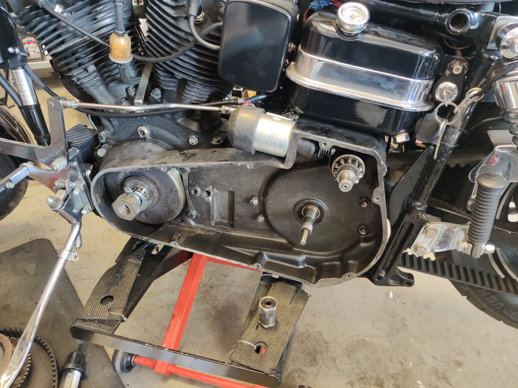 Hallo Allerseits, meine Sturgis stand jetzt ca 2 Monate auf dem Seitenständer und es lief Öl aus dem Primär. Zur Zeit glaube ich, dass es Getriebeöl ist, die durch die Kupplungsstange in den Primär gelaufen ist und hinten am äußeren Primär an der Ablassschraube (welche nicht vorhanden ist da original Primär und Sekundärbelt) rauslief. Bei Aufstellen der Maschine lief ein Schwall raus, ca 0,2 Liter. Also Primär ab und da meine Kupplung auch total Mist war soll die gleich dabei gewechselt werden.