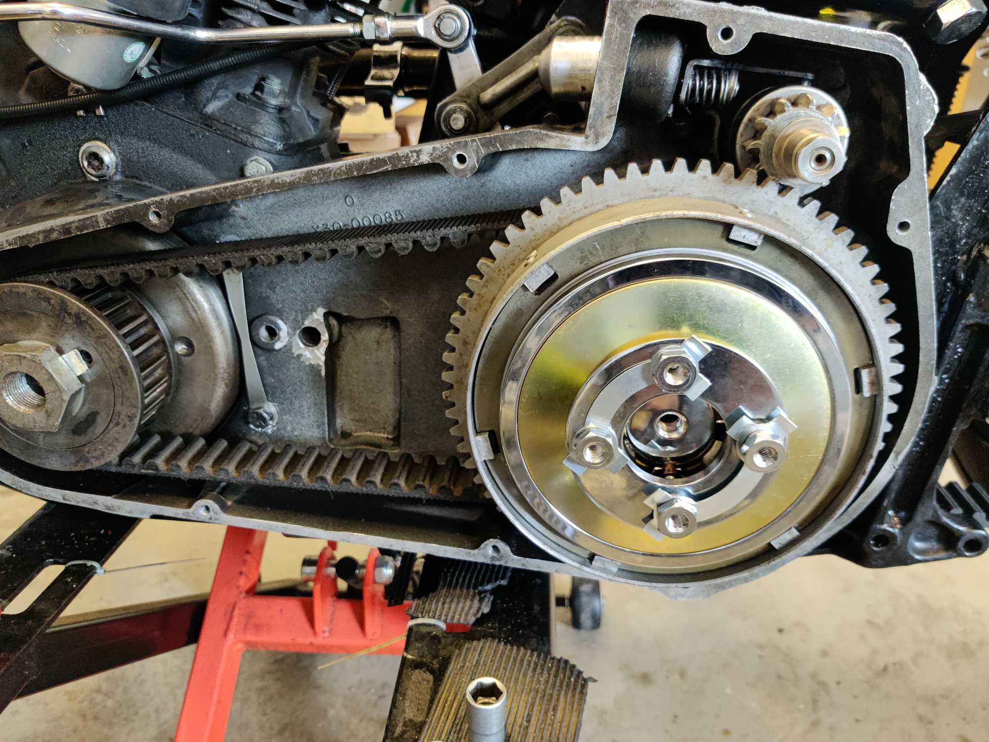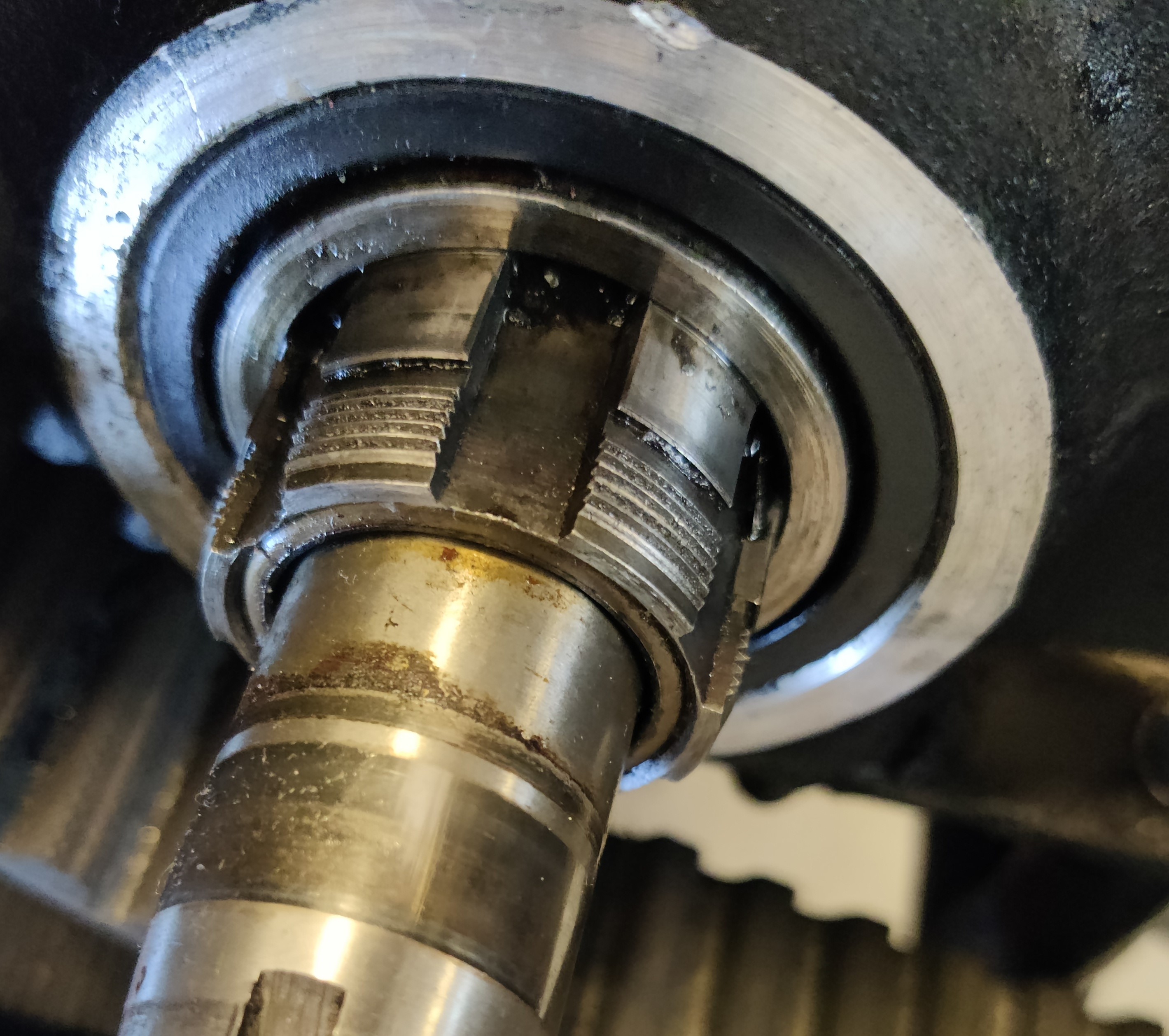 Das Main-drive-gear lässt sich axial etwas bewegen, weil es jetzt ja lose ist. Das wird sonst durch Spacer, Ritzel und Mutter gehalten. Dann darf es nicht mehr verschiebbar sein.
