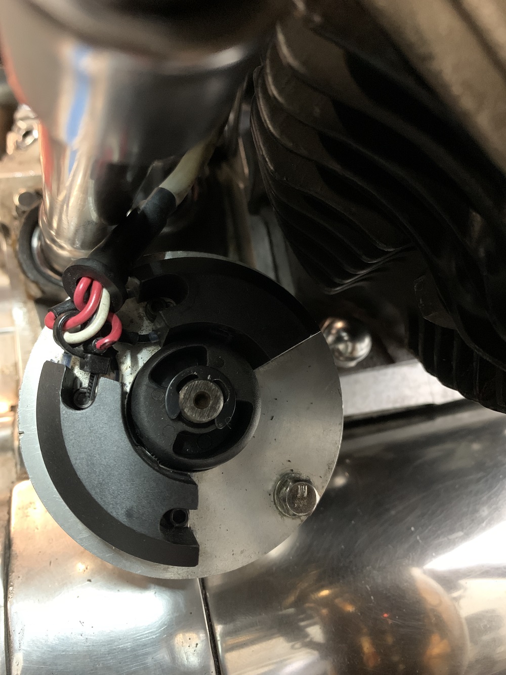 Jetzt kann das m.E. nur heißen -> entweder hatte ich es falsch in Erinnerung dass bei der Panhead das weiße Kabel der Dyna S Singelfire den vorderen Zylinder befeuert —— ODER ——- der Zündstock ist verdreht eingebaut.