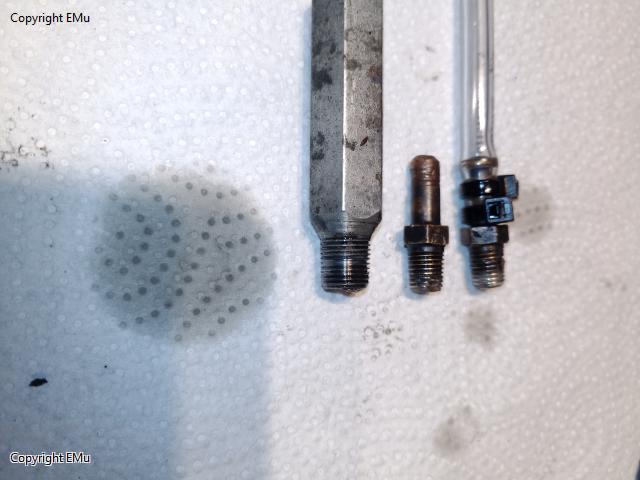 Alle 3 Gewinde auf dem Bild können eigntlich nur NPT-Gewinde (also kegelig) sein. Alle 3 Bauteile werden in einem Bereich eingesetzt, wo abgedichtet werden muß. Und entweder nimmt man dazu ein Kegelgewinde oder man bräuchte einen Bund mit Planfläche, auf dem ein Dichtring liegen könnte. Einen Bund kann ich bei keinem Bautei erkennen. Außerdem weiß ich, daß der Sechskantanschluß für die kurbelgehäuseseitige Absaugung des Primärkastens ist und die anderen beiden Stutzen typische Leitungsanschlüsse sind (möglicherweise Primärkettenöler an der Ölpumpe, etc.) und die haben ab Werk alle NPT Gewinde.