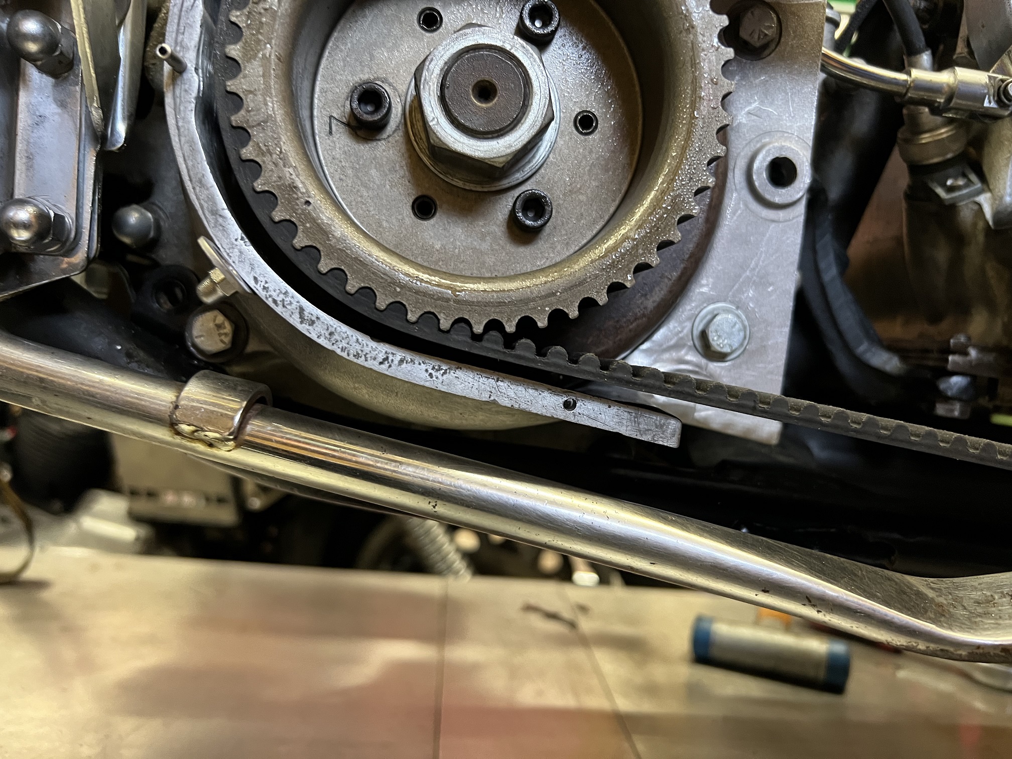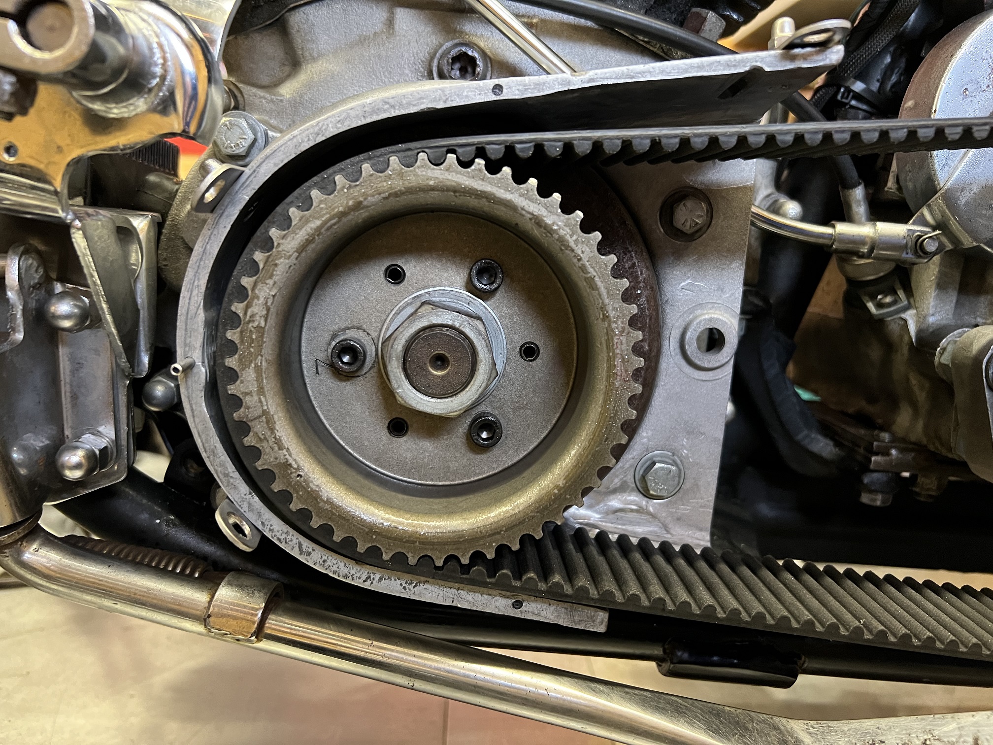 stimmt ist alles sehr eng. Schleift aber nichts und gerade vorne wo der Riemen über das pulley verläuft sollte ersichtlich nicht abheben und damit am Primär schleifen.