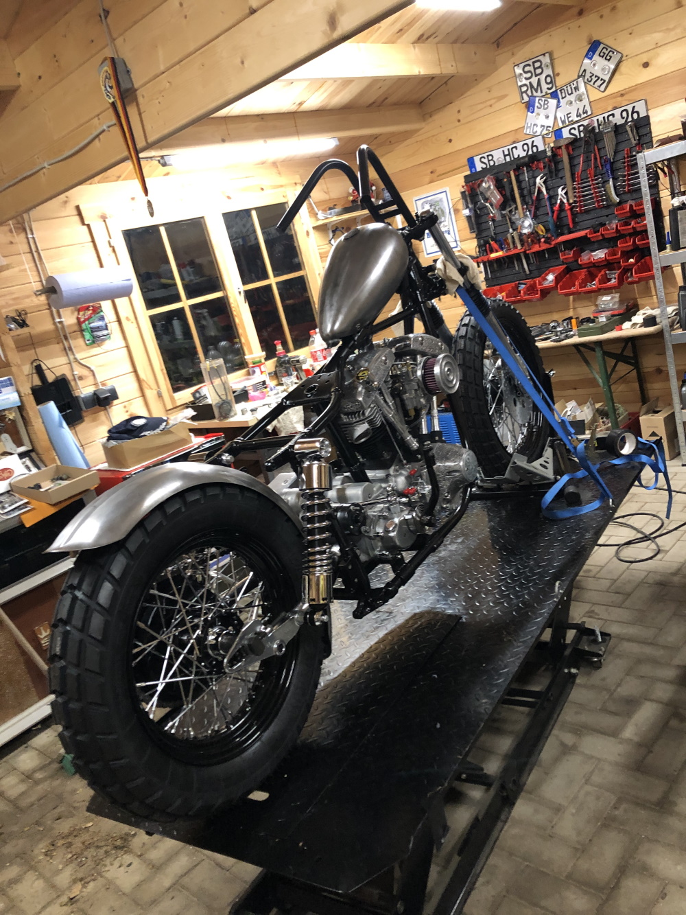 Wie er zuvor sagte, sollte es ein P.E.P. design chop (lackierung) werden ... na dann wird er sicher schwarz, orange mit weißen akzenten. 😉