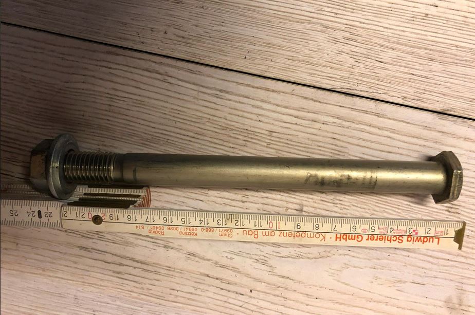 Bei meiner hat wohl mal einer der Vorbesitzer das Gewinde auf ca. 18mm aufgeschnitten und dann ne selbstgebaute Achse eingebaut.