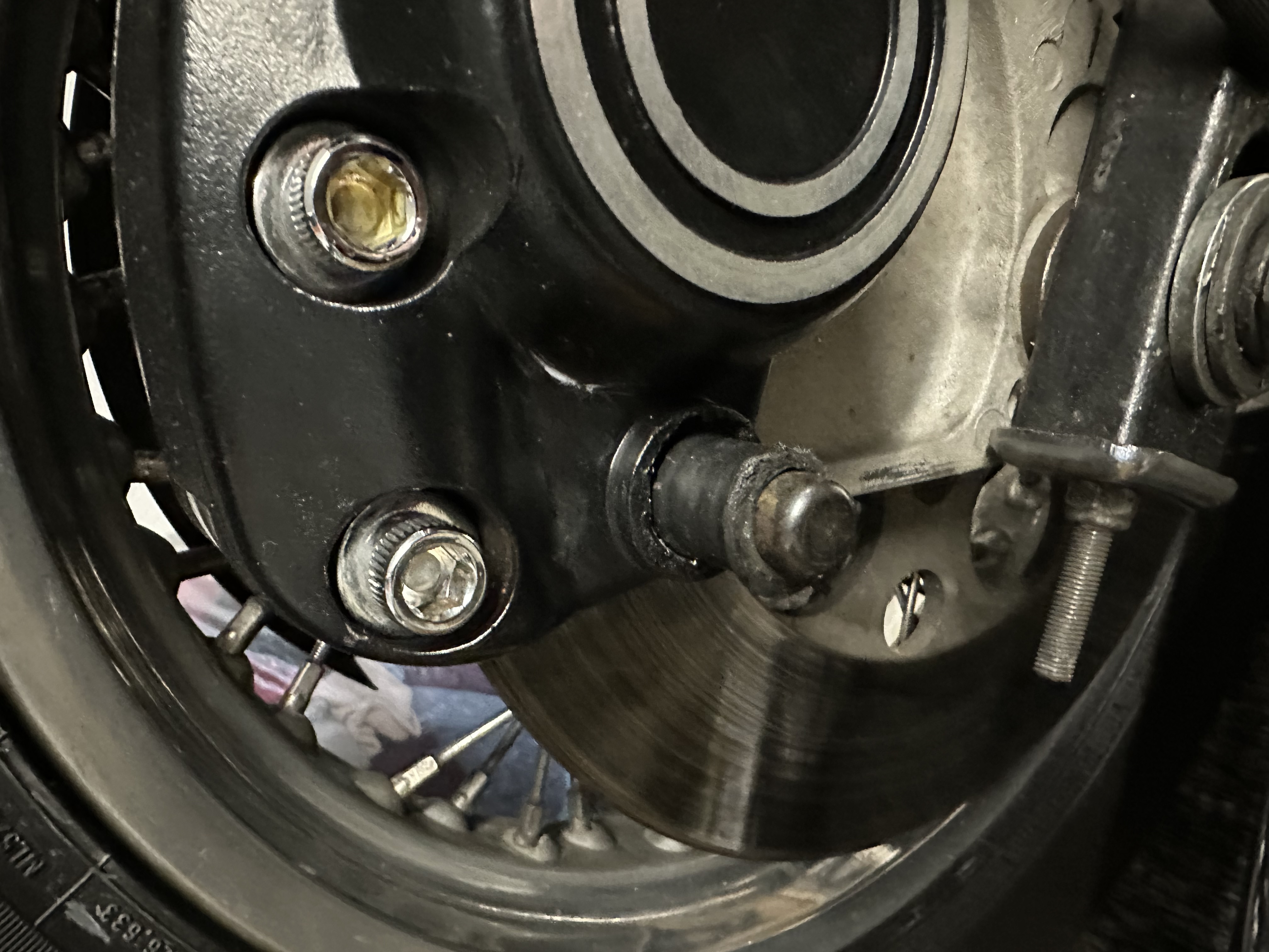 bei meiner letzten Ausfahrt hat sich der Bremssattel hinten gelöst. Bei genauerem hinsehen hat sich mir die Frage gestellt, ob das Ganze denn überhaupt so richtig befestigt ist?