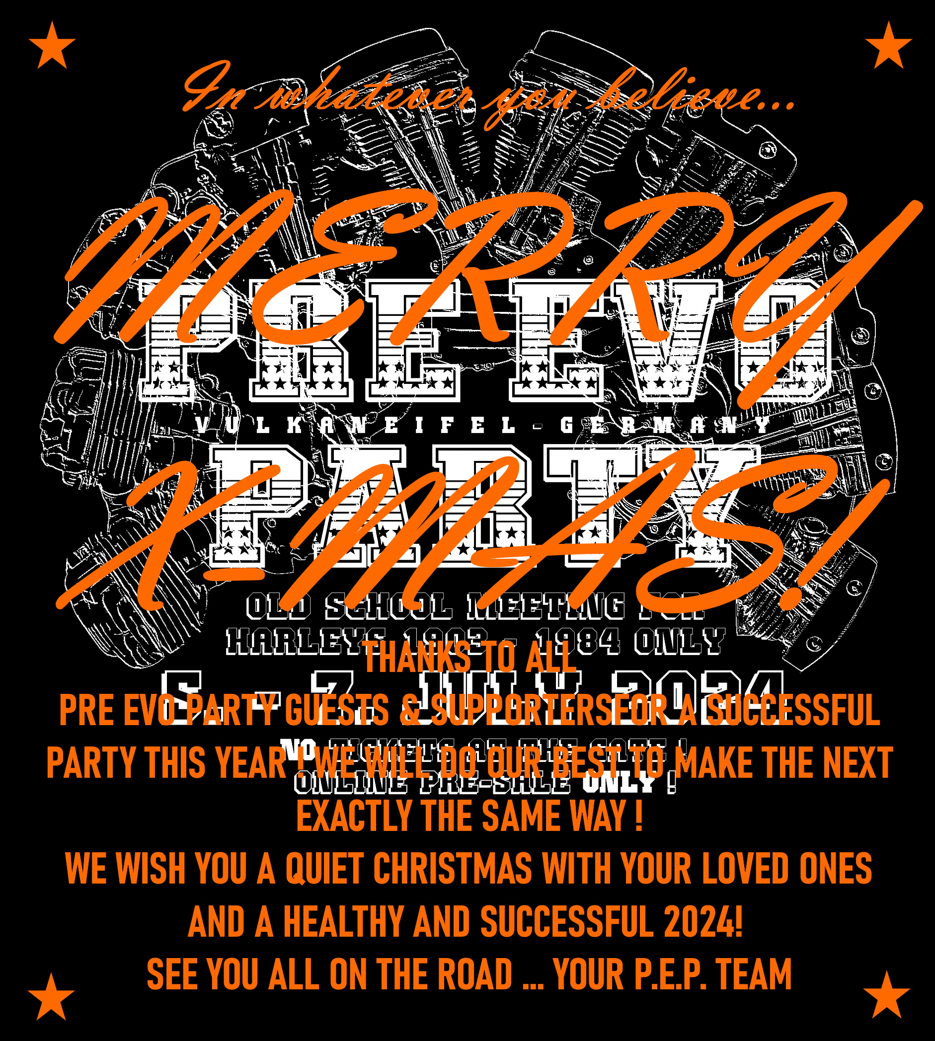 Damit die Pre Evo Party genau das bleibt, was Sie ist, nämlich ein einzigartiger old school Treffpunkt für Alteisen Enthusiasten!