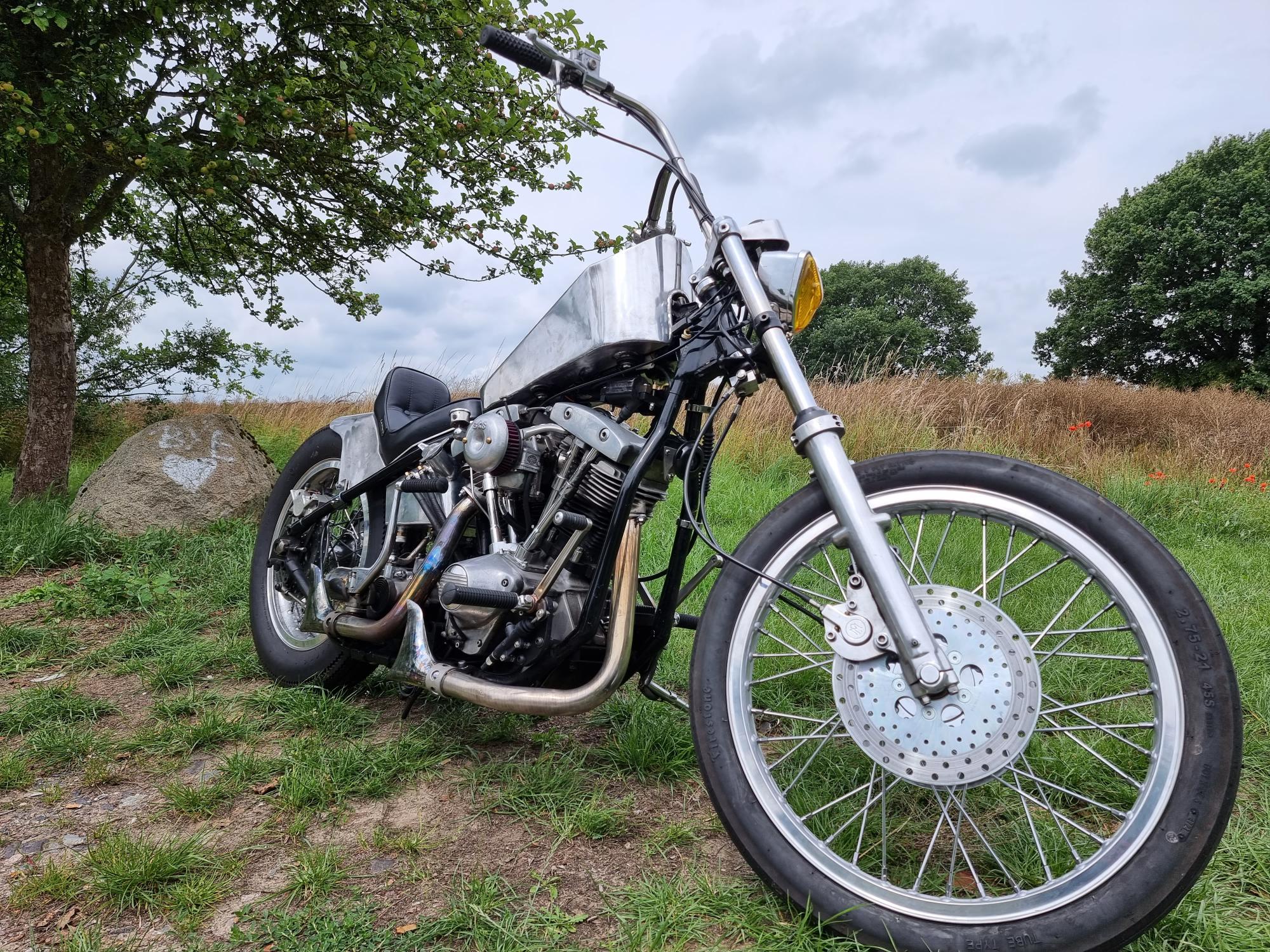 Gabel ist ne 35mm FX , leicht modifiziert damit die Bremssättel mit 21" Speichenfelge passen