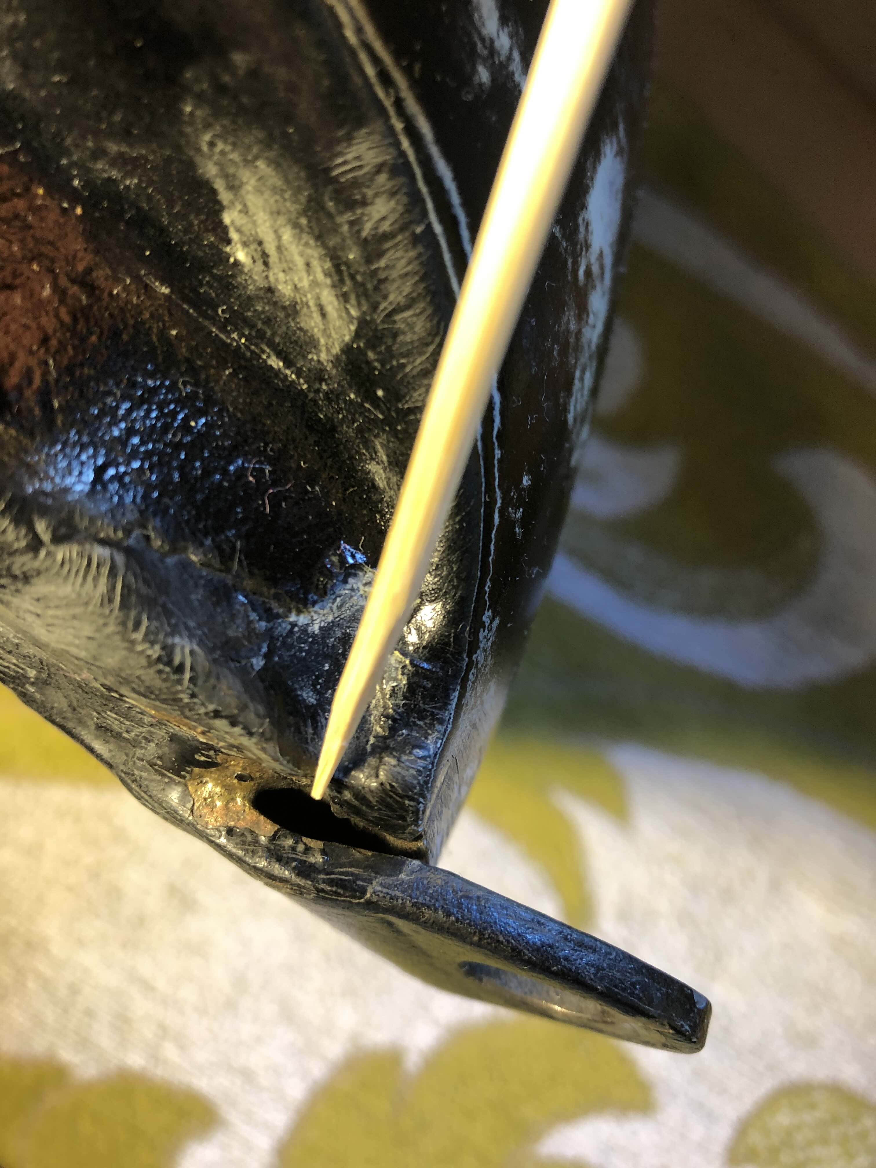 der Spalt ist nicht der Haarriss. Der Haarriss sitzt in dem Hohlraum, also zwischen Rahmenhalterung welche leicht absteht und dem eigentlichen Tank.