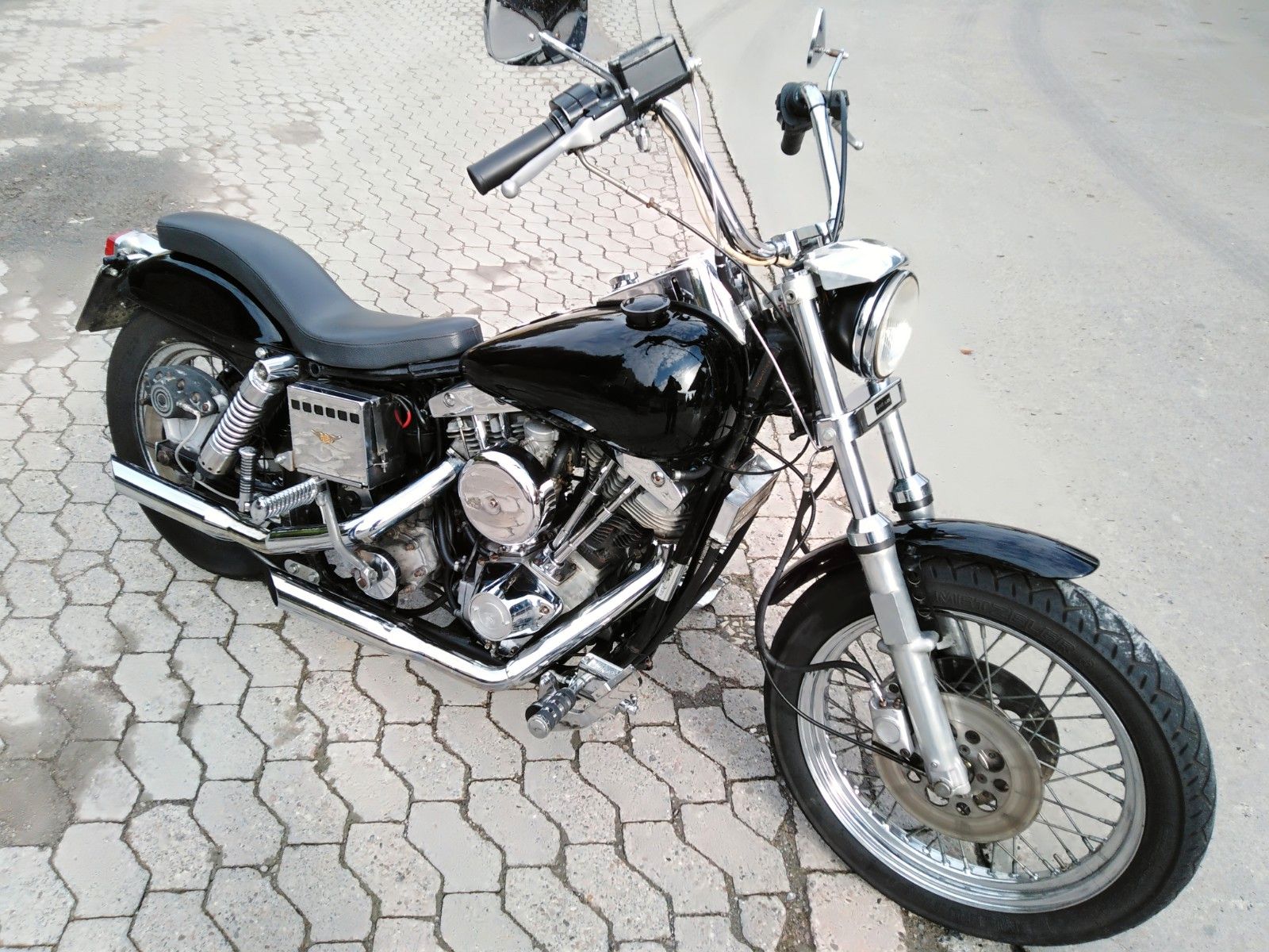 Das Moped ist ein Shovel-Rahmen mit Evo-Motor