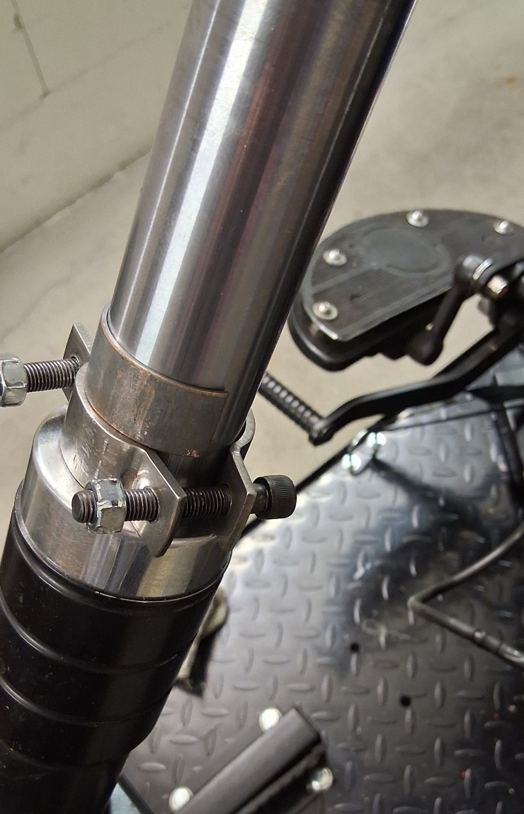Da müsste in der oberen Gabelbrücke eine Klemmung sein, mit zwei Alubuchsen, die müsstest lose bekommen.