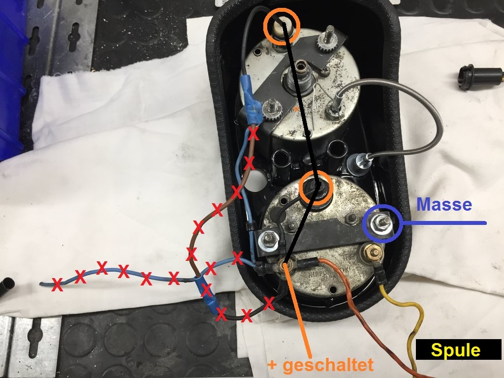 in den originalen Schaltplänen gibt´s da 2 Varianten, die mich lange beschäftigt haben; eine zeigt - wie von mir erwartet- Anschluss Zündspule (für RPM Geber) und Klemme 15 Zündung 12V.Ich würde das gerne mal erörtern, ohne Gerri in Schwierigkeiten zu bringen, da Variante 2 etwas anderes zeigt: Da geht der RPM Anschluss vom Regler aus zum Instrument. 1971-´75