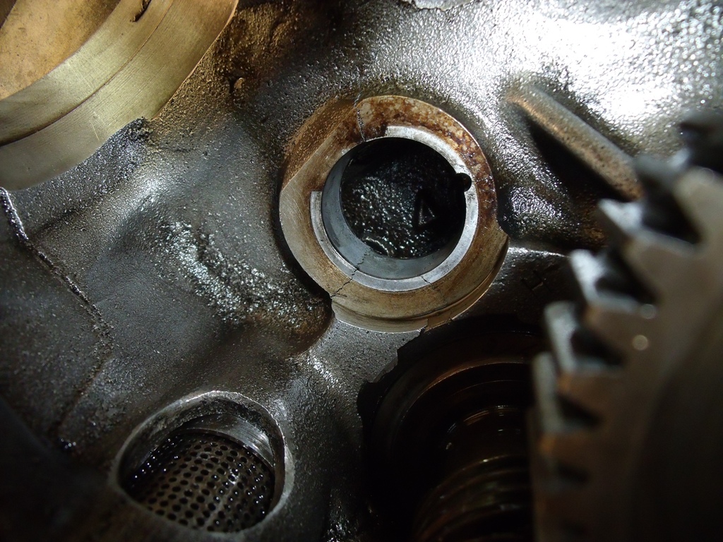 Nockenwellenlagerung2.jpg (376 KB)Man sieht hier in die rechte Gehäusehälfte eines Panheadmotors. Das Loch ist die Nockenwellenlagerung. Ich muss nicht extra erwähnen, dass da keine Risse sein sollten.