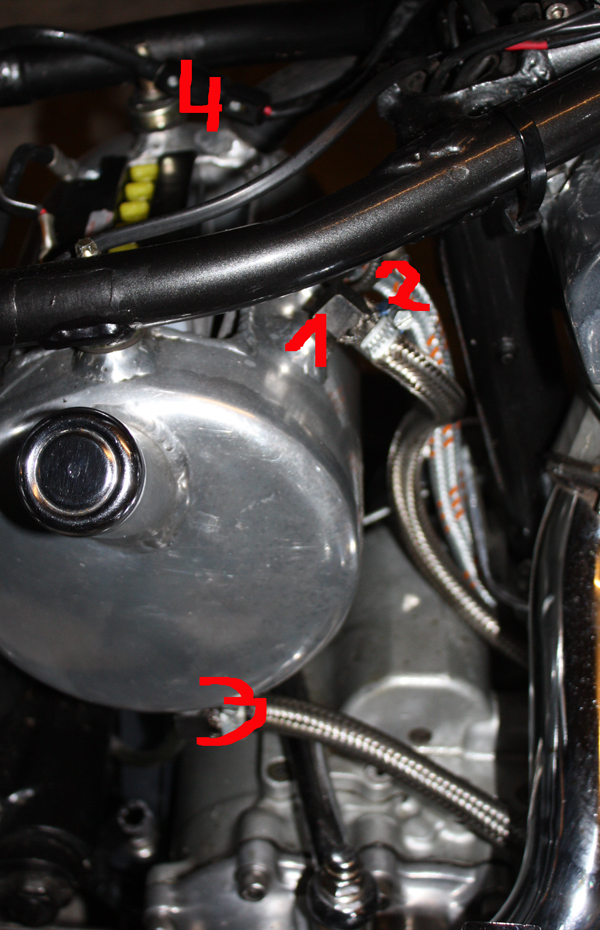 3. der dritte Anschluss liegt am Öltank oben. Er kommt vom Motorgehäuse und dort ist der Anschluss auch oberhalb der anderen Olanschlüsse (ich denke also dies ist die Motorentlüftung)
