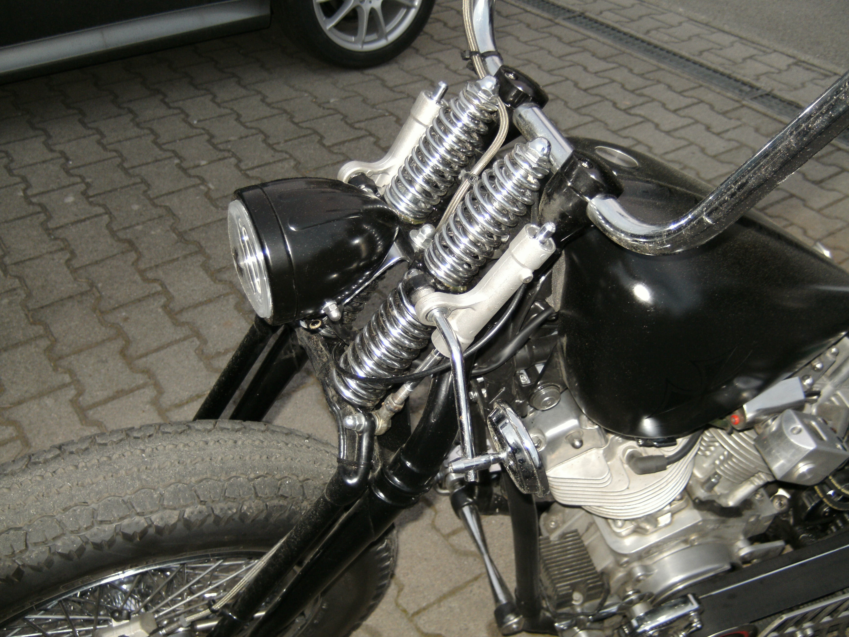Gefedert hatte diese in den ersten Kilometern kaum.....wird nun aber immer besser uns spricht jetzt klasse an. Habe noch zwei Lenkungsdämpfer als Stoßdämpfer verbaut und bin der Meinung das die Springer nun so gut arbeitet wie meine Standartgabel zuvor.