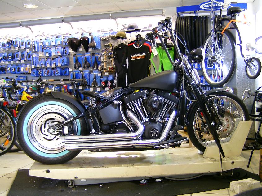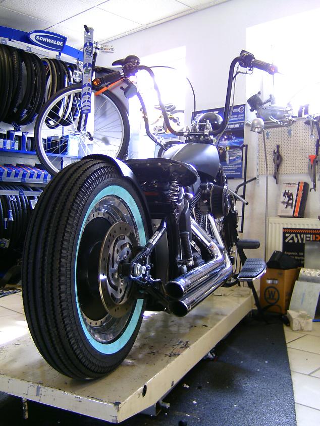 Und da gehen die Meinungen auseinander ;) Ich finde das 21"er in der Springer zu dem schlanken Tank, Fender und Ape einfach geil. Ein wenig David-Mann-mäßig.