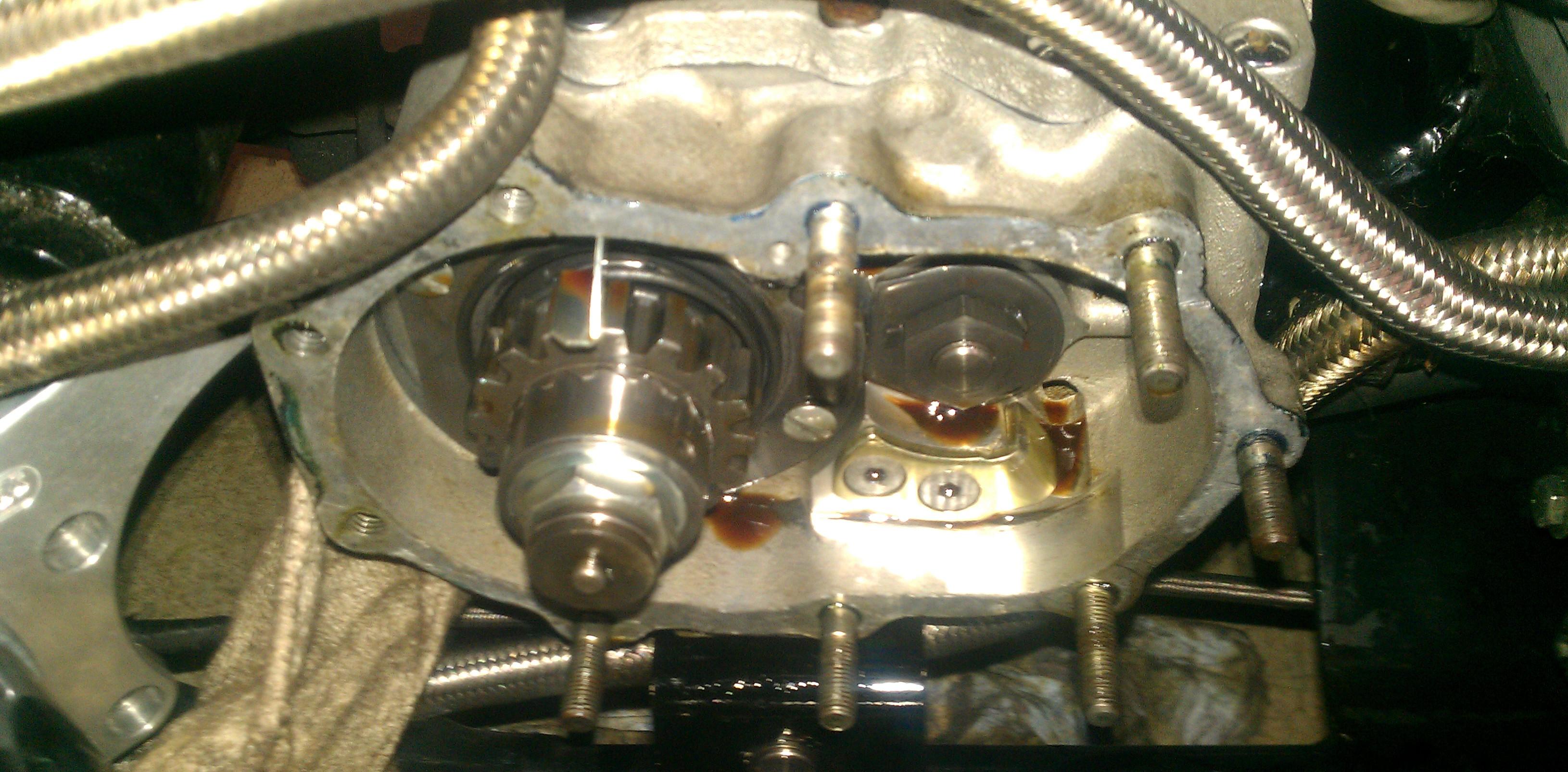 Es fehlt ein Schleuderblech, das sieht aus wie ein Trichter ohne Rohr und hat Zacken. Das Gegenstück, ein Abstreifblech, hast Du bereits im Getriebe drin.