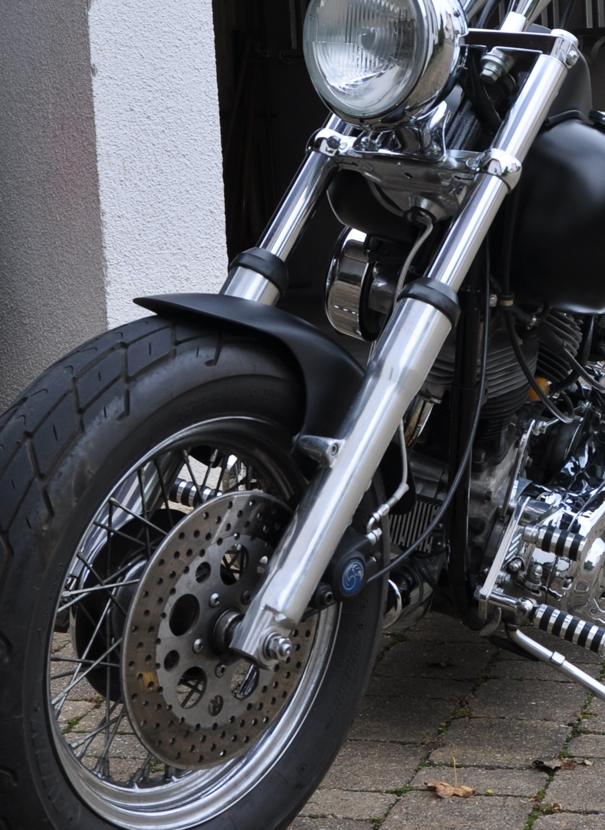 Es ist eine FXE mit Baujahr 78. Die Gabel ist meiner Meinung nach aber nicht original. Mir wurde mal gesagt, sie wäre von einer "Softtail".