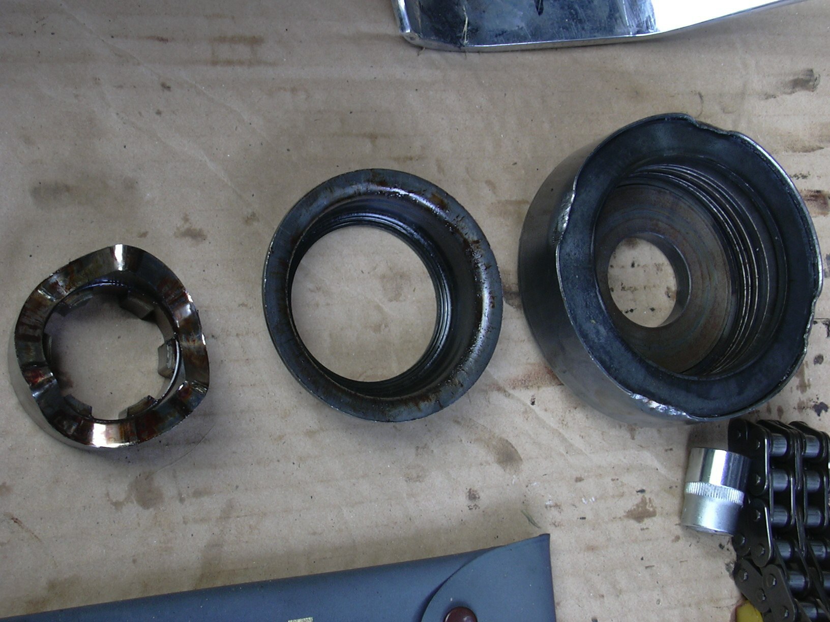 Ich hatte gemerkt, dass der Spanner der Primärkette schon am Anschlag steht, die Kette also schon mächtig gelängt ist. Gesagt, getan: neue Kette und Motorritzel (weil doch schon tief eingelaufen) gekauft. Den Korb habe ich mir gespart, weil er 200 Steine kostet. Beim Einbau habe ich die Mutter wieder richtig angeknallt und trotzdem hat die Federglocke noch leichtes Spiel und lässt sich von Hand drehen. Also wieder abgebaut und nachgemessen. Und die motorseitige Nut am neuen Ritzel ist wirklich ein Hauch tiefer abgedreht. Ich habe die Werte nicht verglichen, aber es war ein knapper Millimeter.