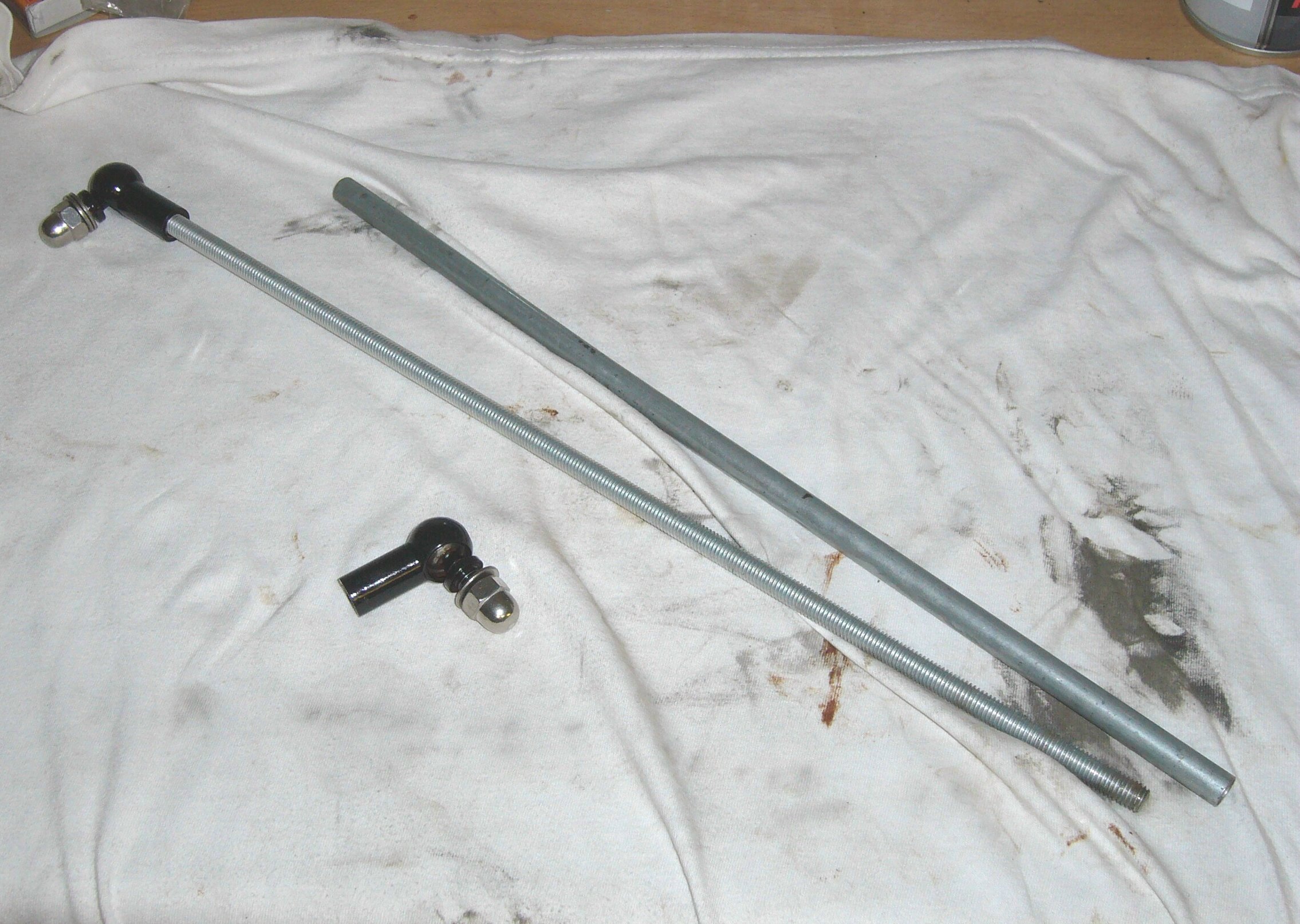 Eine Gewindestange mit - im meinem Fall 2 Kugelgelenken - und darüber ein passgenaues Alurohr aus dem Baumarkt.