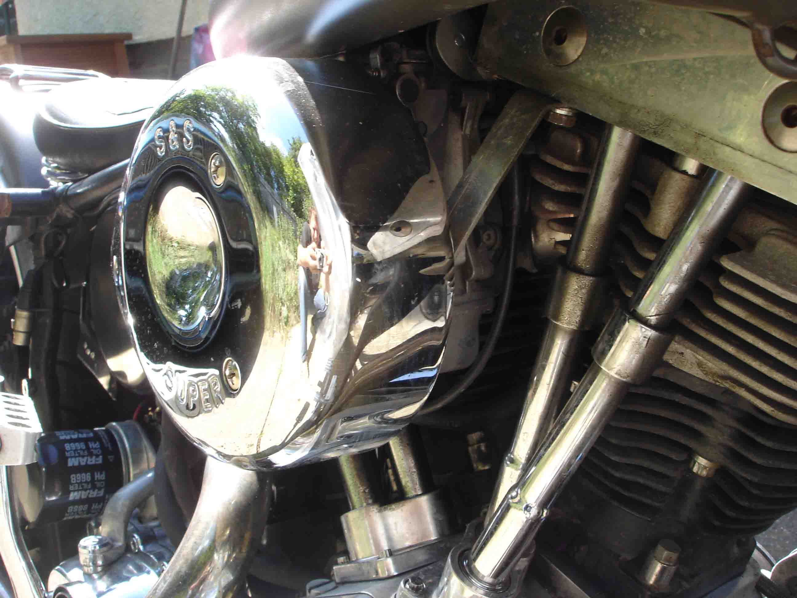 Was mich aber am Mikuni wirklich stört ist der fette Luftfilter, das Teil ist 8" im Durchmesser und sieht echt scheixxe aus! Am liebsten würde ich meinen S&S Deckel wieder ranmontieren da ich da auch meine Kontrolllämpchen drin hab, aber ich finde keinen passenden Adapter für...