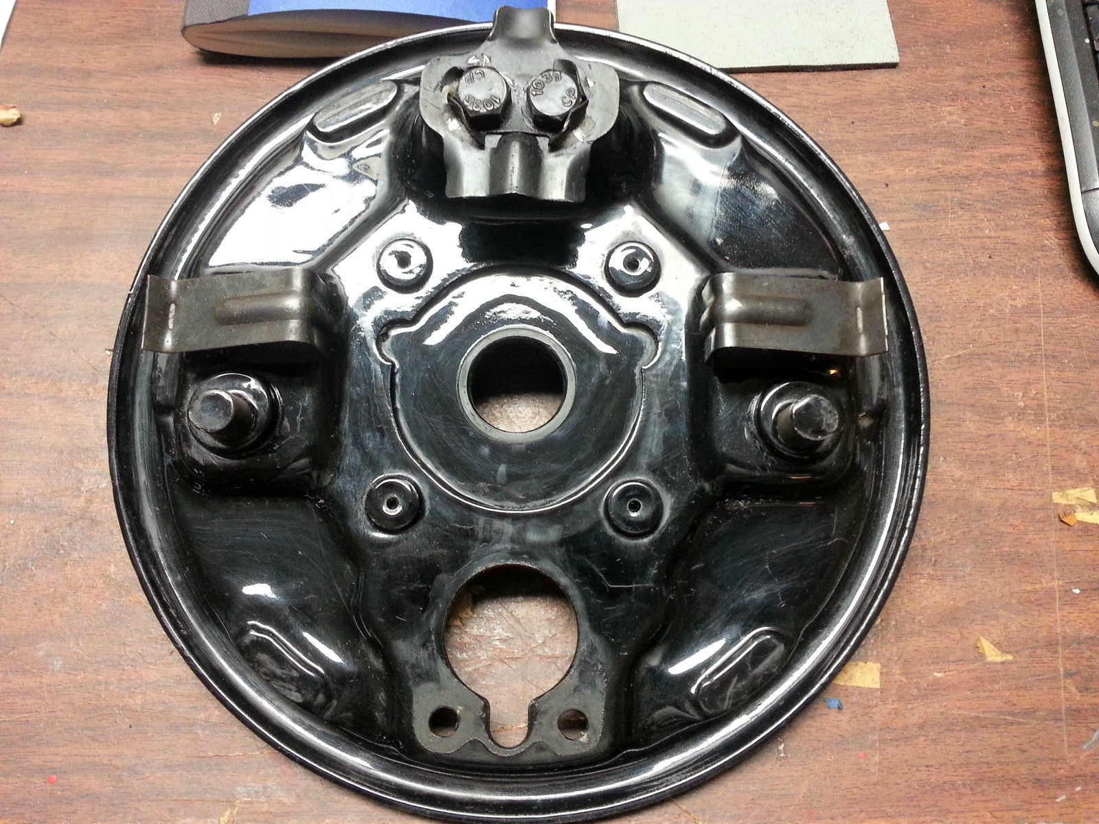 mein eindruck war bisher, dass in dem gesamten zeitraum ein- und dieselbe ankerplatte zum einsatz kam. hier hat HD wohl auf die firma bendix zurückgegriffen. wenn ich jetzt nach einer ankerplatte (für midstar, d.h. 67-72) suche, dann finde ich zwei verschiedene modelle, die sich nach meiner wahrnehmung nur geringfügig (innen in der mitte) voneinander unterscheiden. die bendix OEM nummern lauten 300790 und 322922.