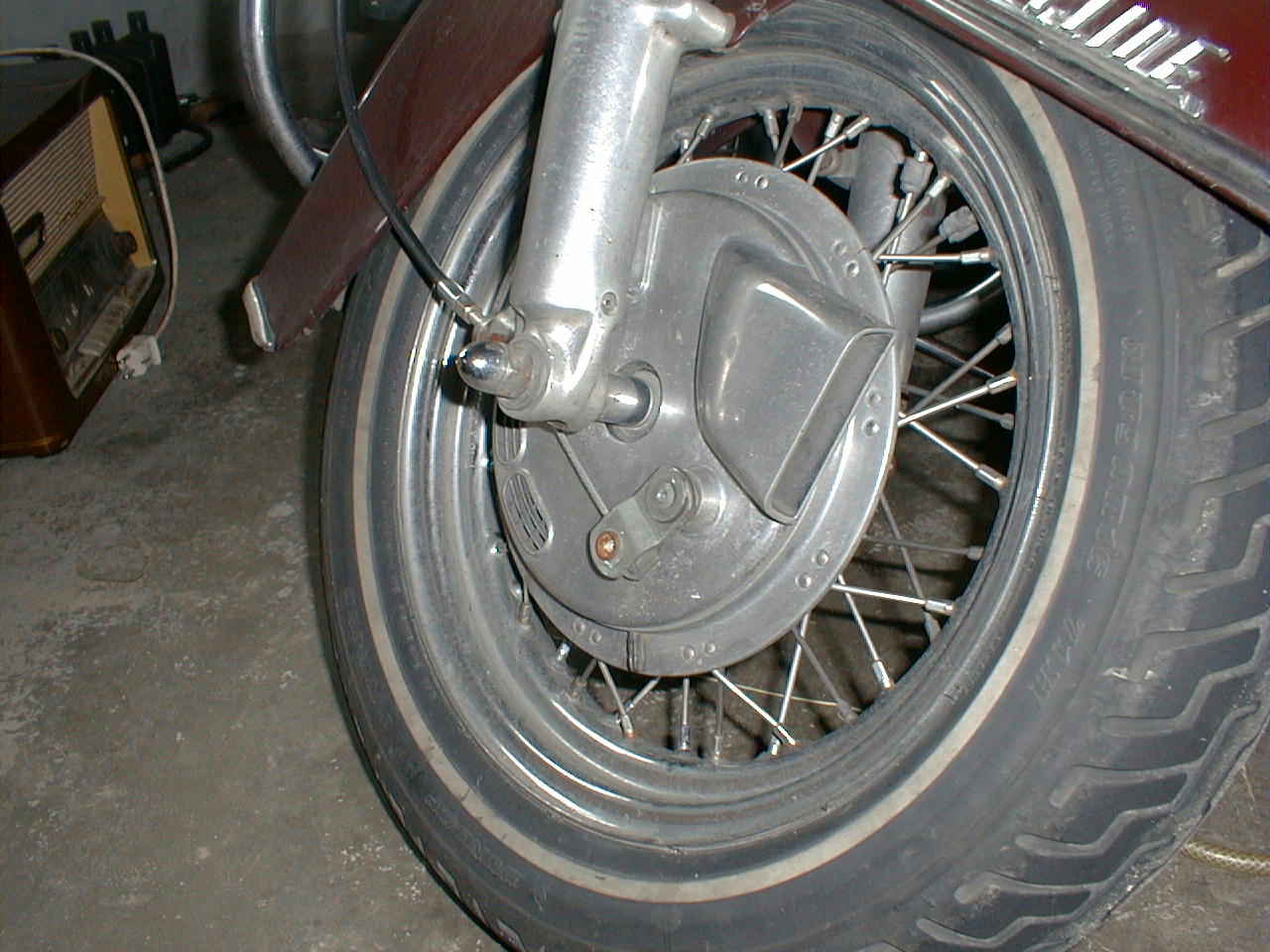Mich hat es damals geärgert, dass der Einspeicher die Trommel mittig eingespeicht hat. Da ich für meiner Wide-Glide Gabel sowieso eine Achse konstruieren und die Sache ausdistanzieren musste, wäre es mir lieber gewesen, er hätte die Nabe mehr nach Links gesetzt. Dann wären die kurzen Speichen in einem spitzeren Winkel und weniger oder gar nicht gebogen.