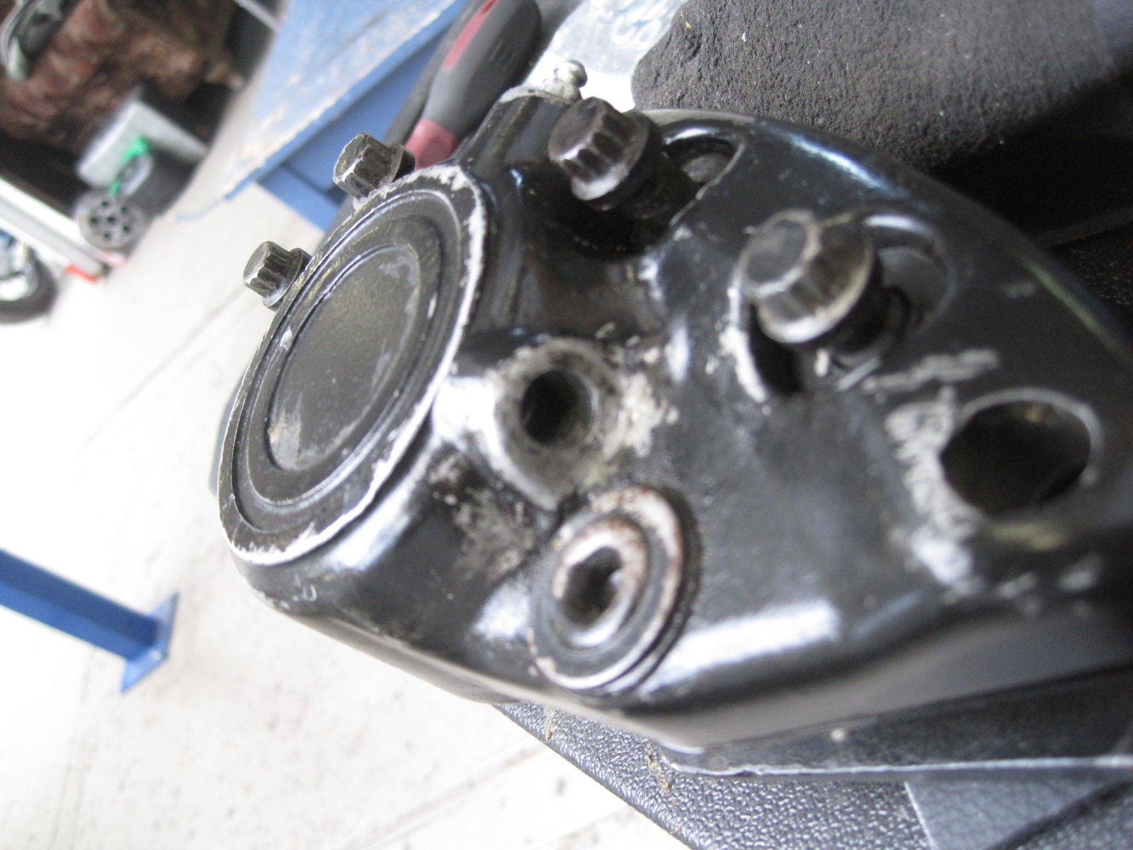 trotz neuer dichtungen ist der kolben immer noch undicht (kolben sieht gut aus, lauffläche im sattel mit leichten korrosionsspuren). das 1/8 - 27 npt gewinde im sattel zur verschraubung der leitung (=konisches gewinde "national pipe thread") ist beschädigt.