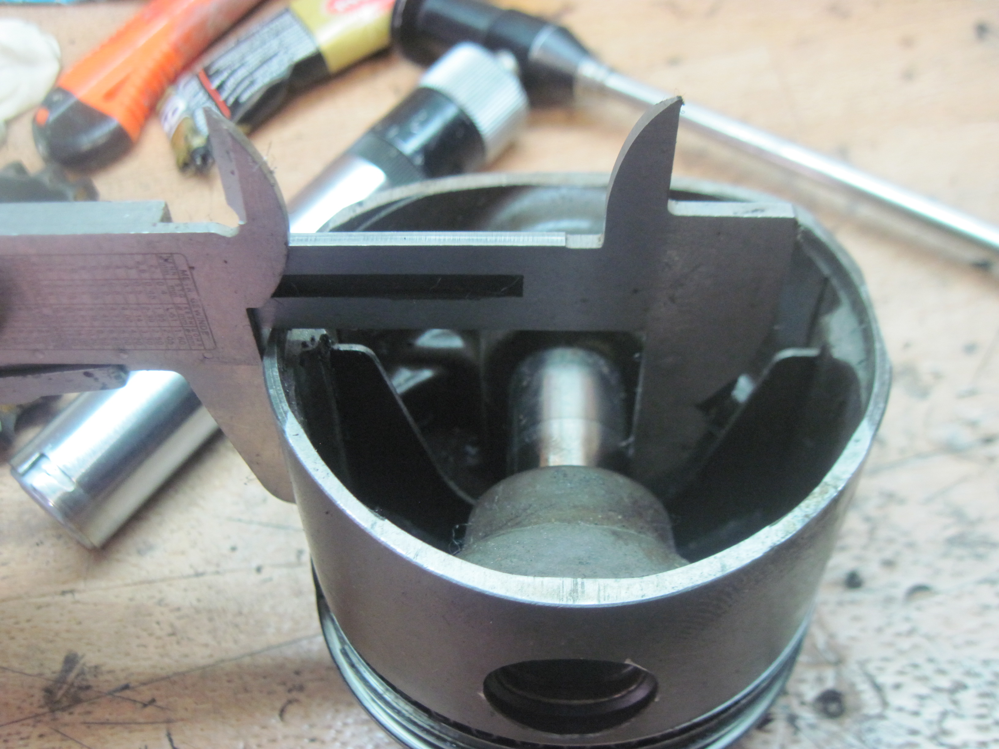 Habe einen alten Kolben gefunden.Ob Mahle weiss ich nicht. Allerdings kein Pfeil mehr drauf.Habe aber mal, wie auf dem einen Bild zu sehen, nachgemessen.Ich hoffe das ist so richtig gemessen.Andres ist es mir nicht möglich.Da ist ein Unterschied von ca einem halben Millimeter.