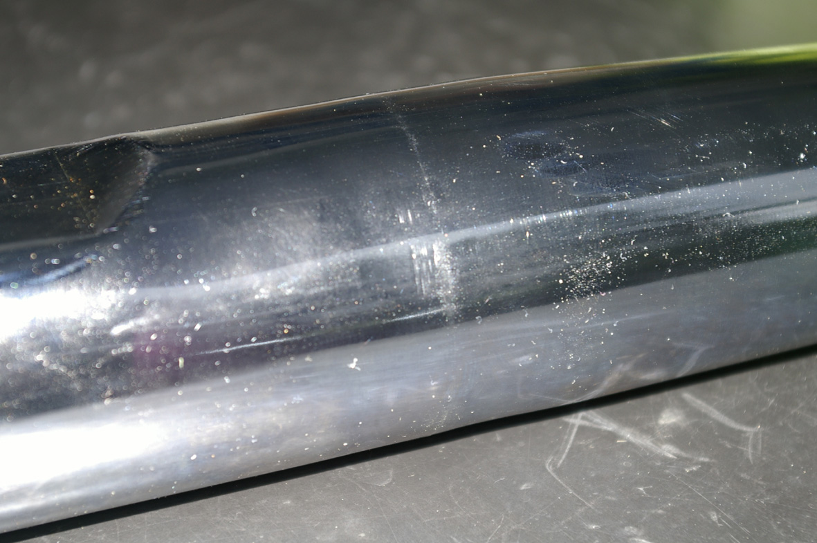 rundherum in der Mitte eine Einschnürung, überall Flexspuren und Schweißpunkte außen zu sehen....
