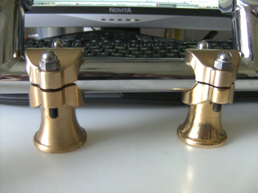 Ist eigentlich ganz einfach: man schraubt die Riser von oben in den Holme fest, dadurch werden sie auch auf die Brücke gepresst und somit hält das Ganze Bomben-sicher!