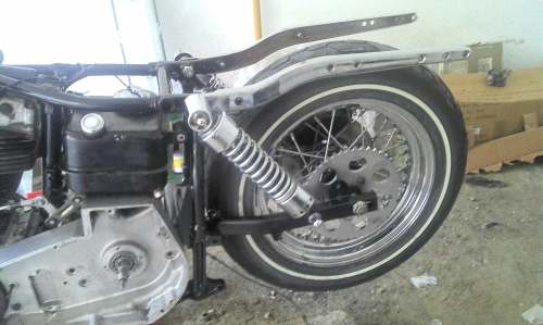 also ich habe meine original kastenschwinge von meinem shovel vor ca 20 jahren um geschweißt, habe die original halterungen mit der flex abgetrennt und von einem schweißfachmann ca 1cm dahinter wieder anschweißen lassen.